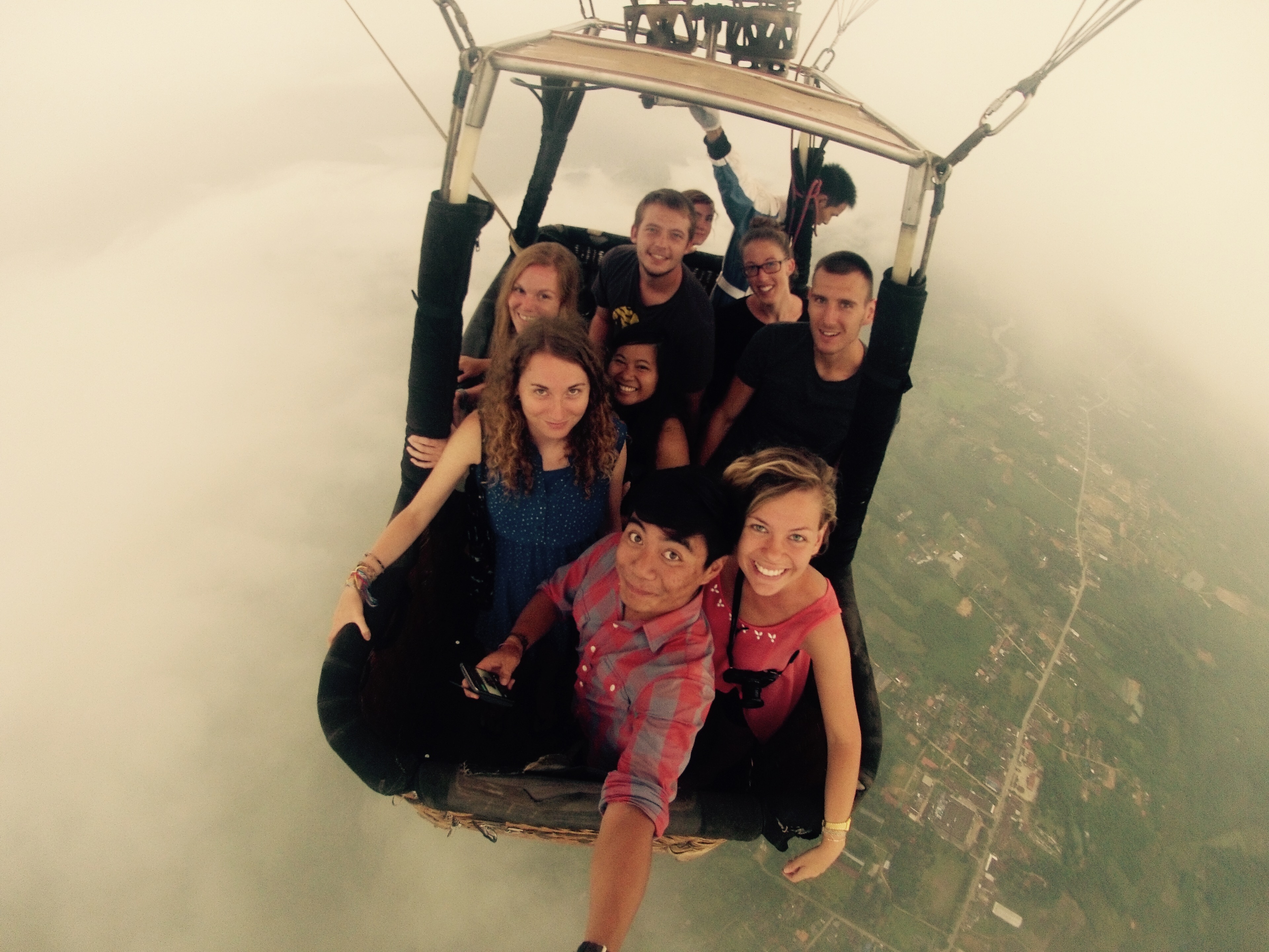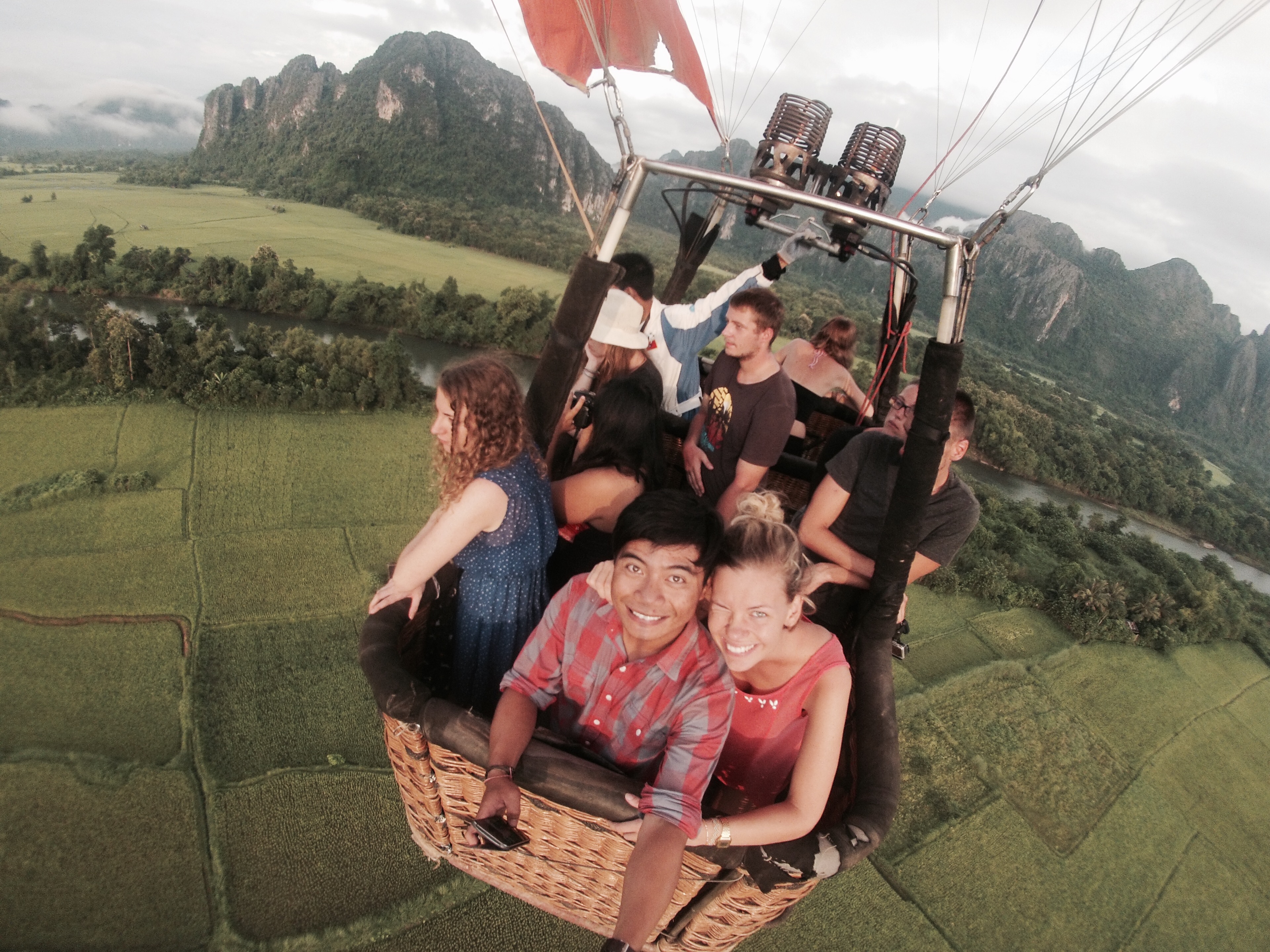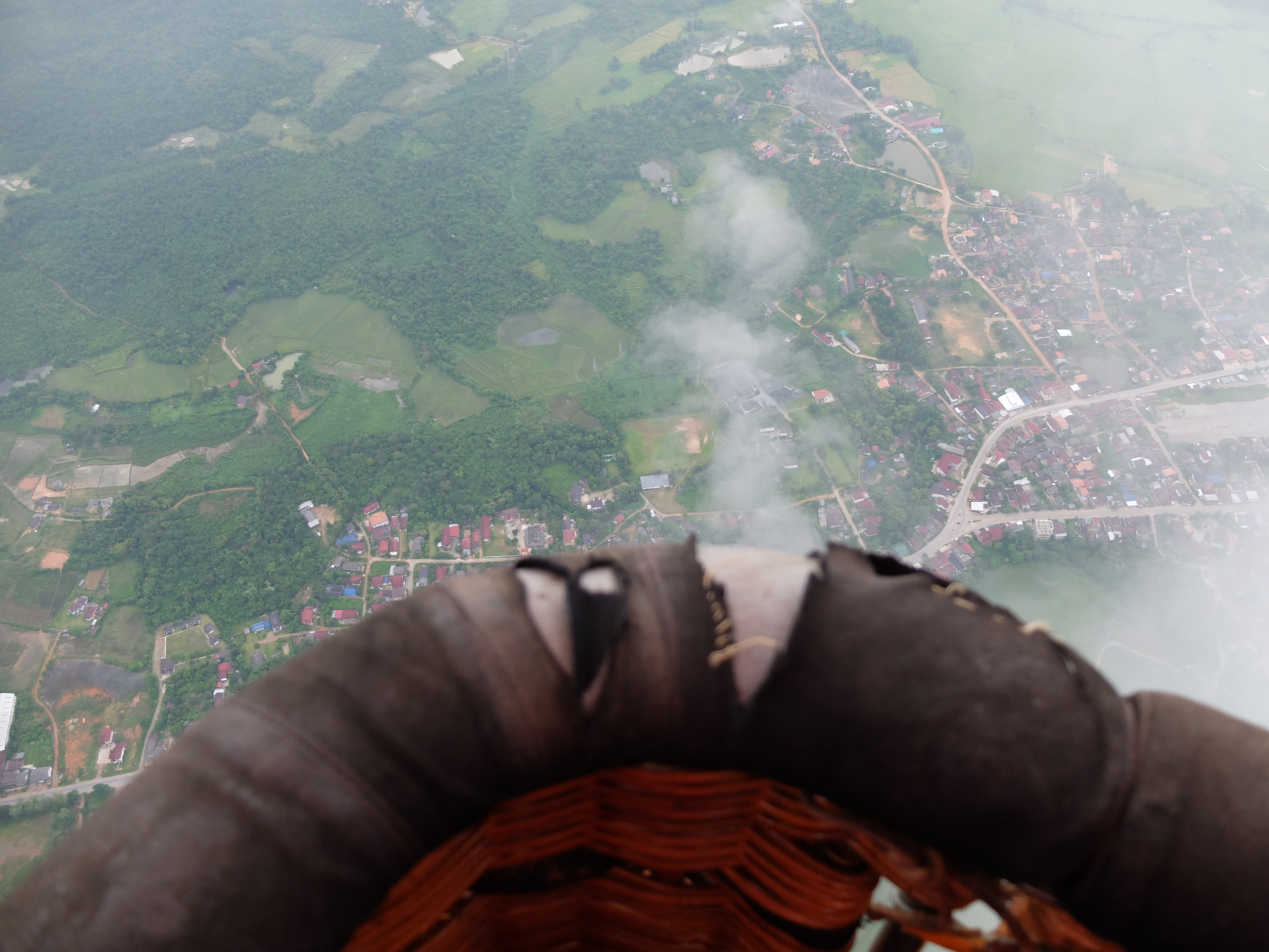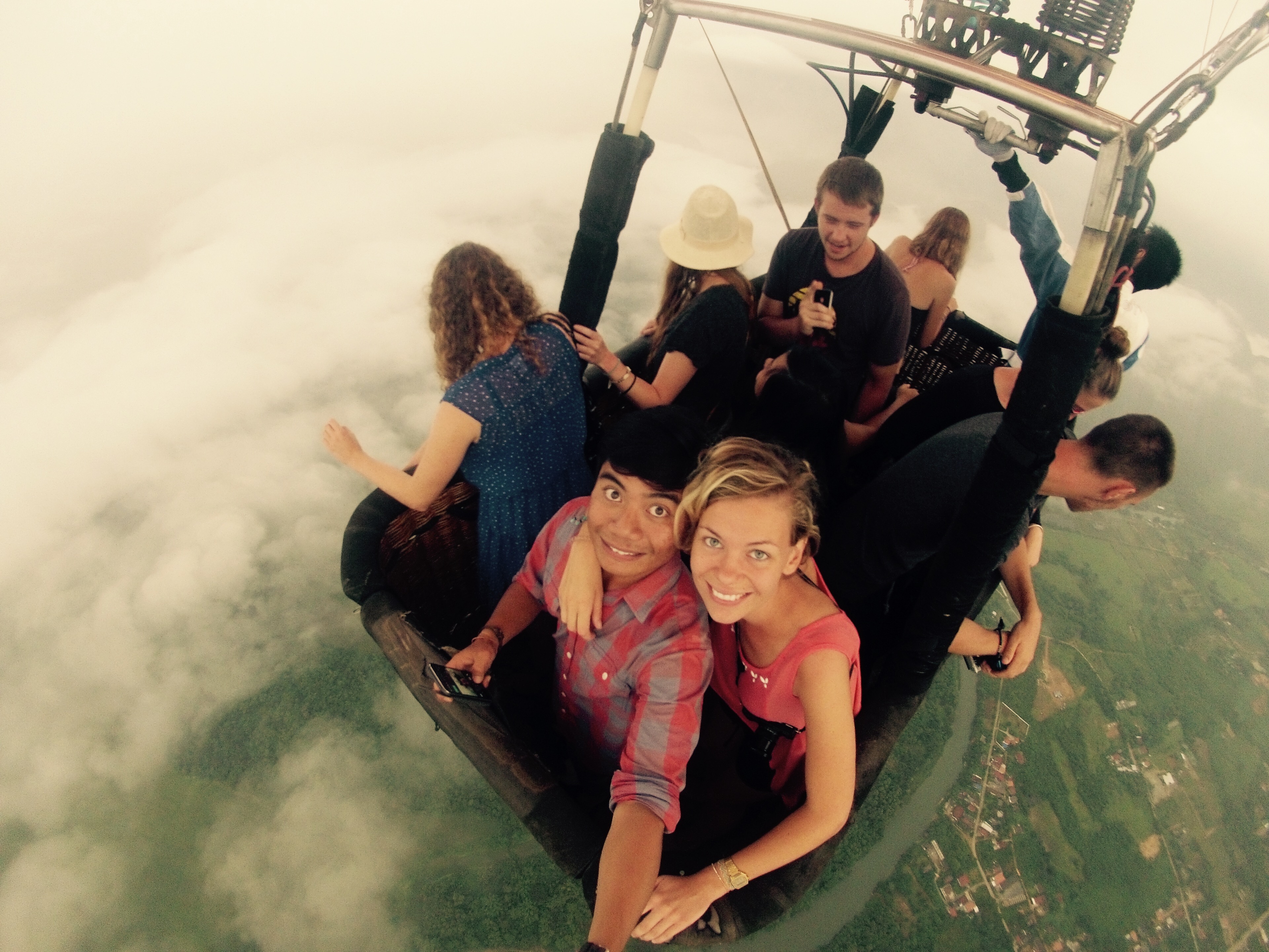 Sinds ik een klein meisje was droomde ik al van een ballonvlucht. En nu op mijn 26ste, in Laos, heel vroeg in de morgen, zag ik hoe een luchtballon met zoveel kleur volgeblazen werd met hete lucht. Toen ik eenmaal in het mandje stond besefte ik me dat dit het einde zou kunnen zijn. Het langzaam en steady loskomen van de grond, het vuur zien en horen, de serieuze blik van de ballonmeneer; welke gehesen was in een prachtig pak inclusief handschoenen. Charlies gezicht. Het stil hangen en de stilte. Dan de zon zien opkomen tussen de bergen en wolken, de rivier en rijstvelden onder ons. Het landschap langzaam kleur zien krijgen en zoveel reliëf. Moest mijn adem inhouden om niet te janken. Ik had me geen mooier einde kunnen bedenken. Gelukkig leef ik nog; de landing was net zo perfect.