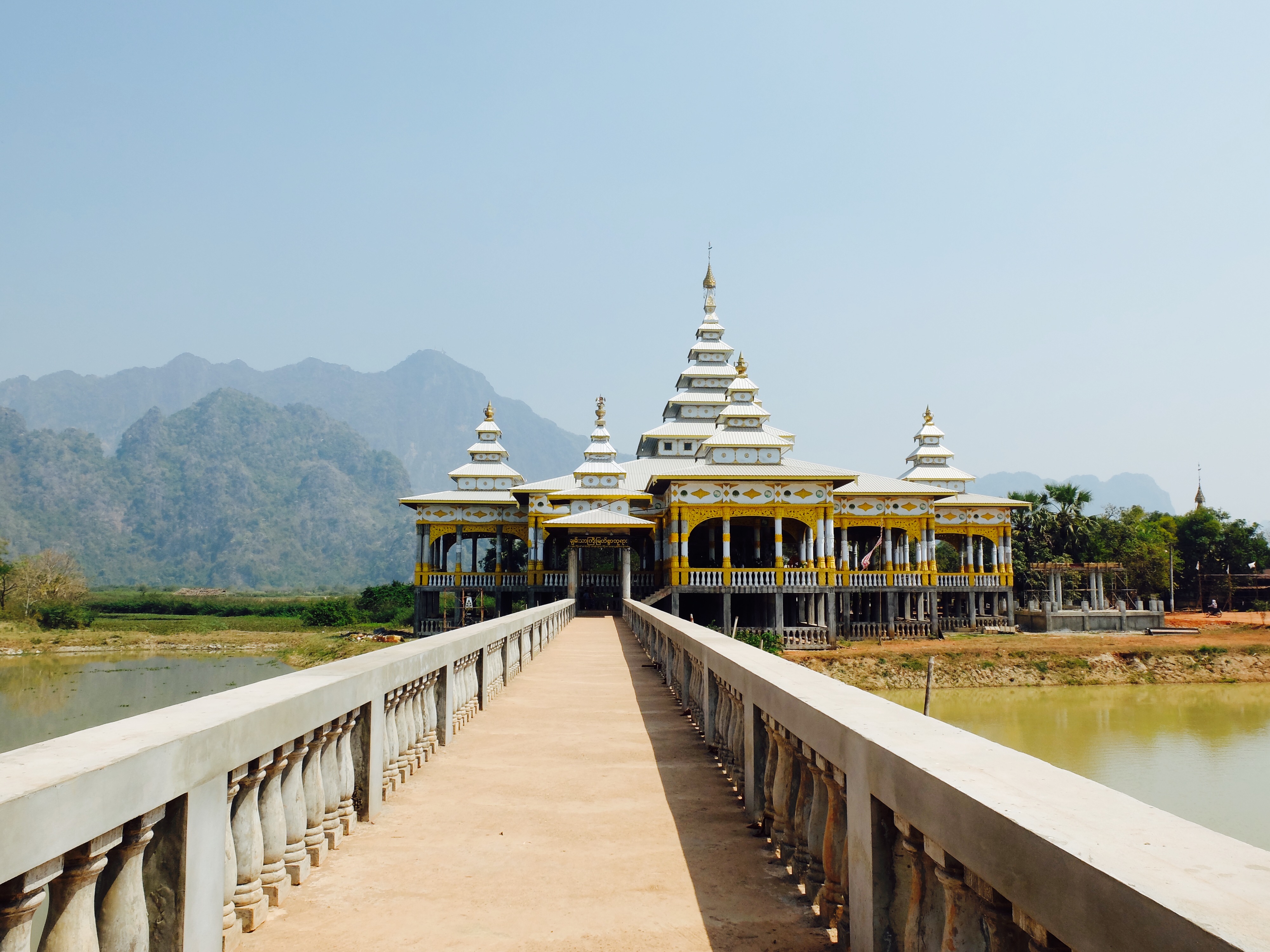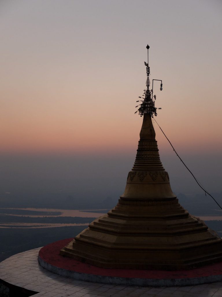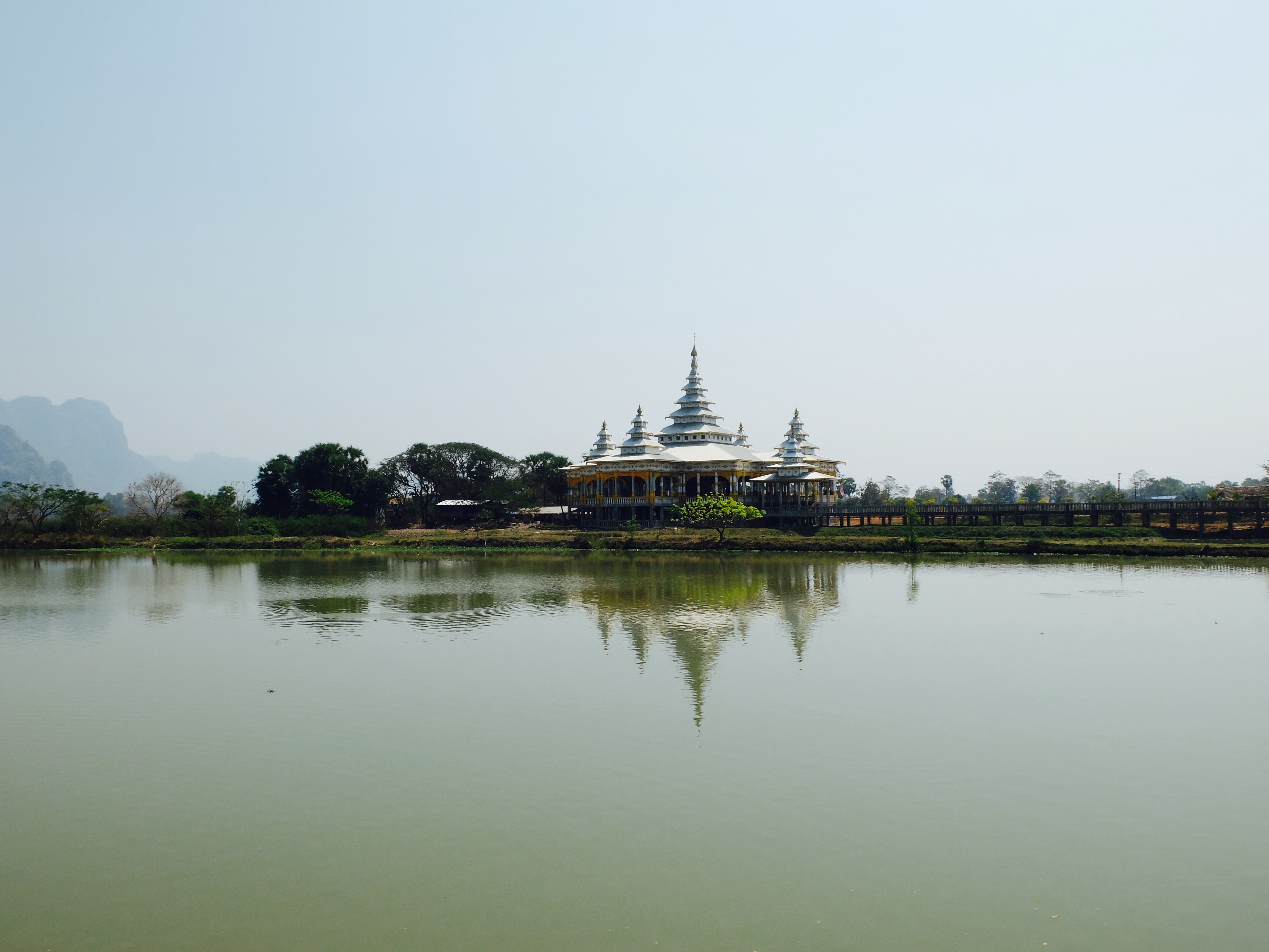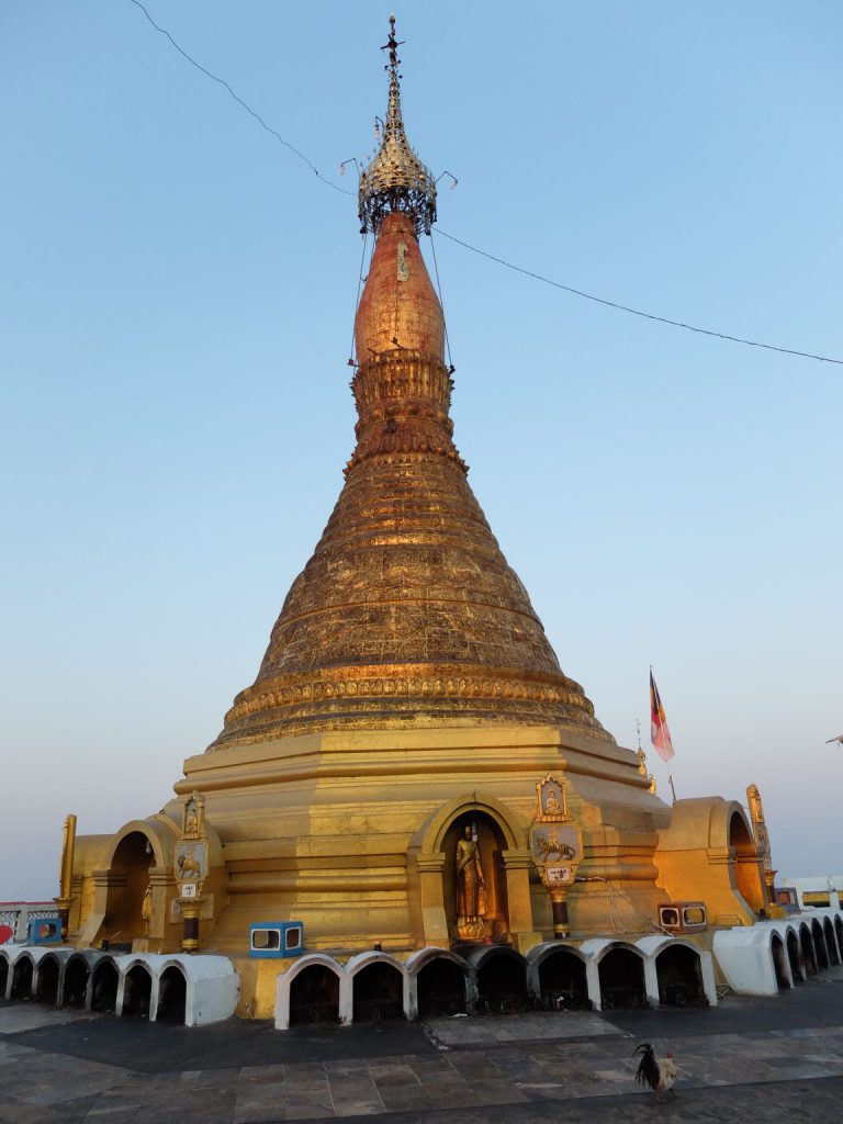 Met de slowtrain gingen we op weg naar Bago, ging echt wel heel langzaam. Ik vond het geinig. In Bago bezochten we de Golden Rock, wat een van de drukbezochtste religieuze plekken is van Myanmar. Het is een grote ronde gouden steen (no shit) met een pagoda erop, de mannen mogen erbij komen en het nog gouder maken (en dat kan bijna niet) met bladgoud. Voornamelijk de vrouwen hangen bellen aan het hek, in de hoop op geluk, met hun namen erop. Alleen de rit ernaartoe was het al waard. Opgepropt in een open truck met alleen maar locals, geweldig weer en de stijle berg op. Op de weg terug merkte iemand mn tattoo op en vervolgens sprak de hele truck erover. De crème die ik op mn gezicht deed wilden zij ook en de vrouwen achter me waren zo gelukkig met de Nivea. Het stadje zelf heel sereen en fijn. No pressure van mensen die iets van toeristen willen, ook hier.