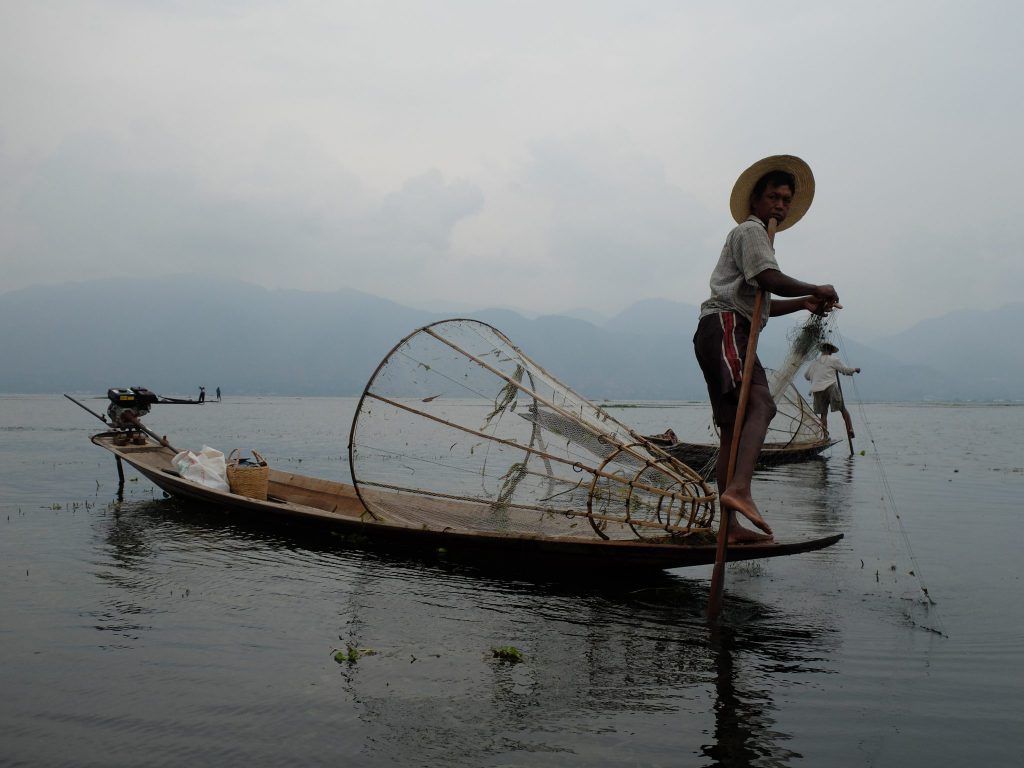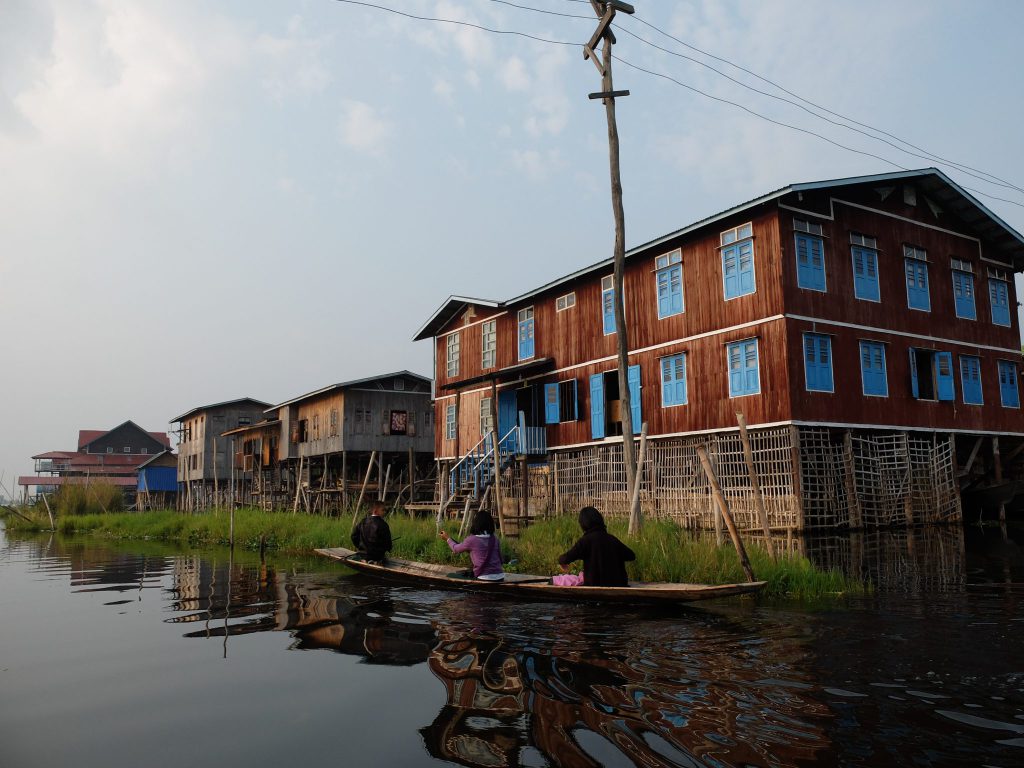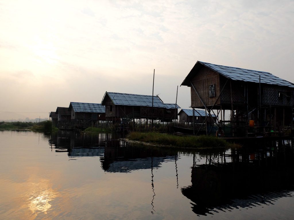 En een slecht gevoel kreeg ik ook bij het plannen van de boattour op Inle Lake, welke alle toeristen doen. Eigenlijk vanwege wat ik eerder heb beschreven. Daarom besloten we om samen een boot te nemen voor een halve dag, om niet andere toeristen (11 uur!!) rond te moeten touren. Ook omdat we dan zelf kunnen bepalen wanneer we weg willen en we niet al de shops af hoeven. Er waren goede en minder goede dingen aan de tour. Bij zonsopgang stonden de locals klaar op de boot om te poseren voor geld. Ze hielden een net in de lucht en balanceerden op een been. Een backpacker had me eerder verteld dat het net niet meer gebruikt werd. Gelukkig reden we daar eigenlijk heel snel voorbij en door naar de echte vissers. Ze staan op het puntje van de boot op een been en de andere gebruiken ze om de peddel te bedienen. Fantastisch gezicht. Ze schuiven het net van een stok en hopen dat daar visjes in zijn gezwommen als ze het weer binnen halen. We zijn langs shops gegaan maar konden daar gelukkig heel snel weer weg. Ik voelde me ongemakkelijk en Gavin ook, toen we tussen de huizen op palen doorvoeren. Het is heel bijzonder en mooi om te zien hoe de mensen leven maar je kijkt in hun huis. En letterlijk alles is open. De mensen vinden het doorgaans ook niet fijn, dat kon ik zien aan hun gezichten.