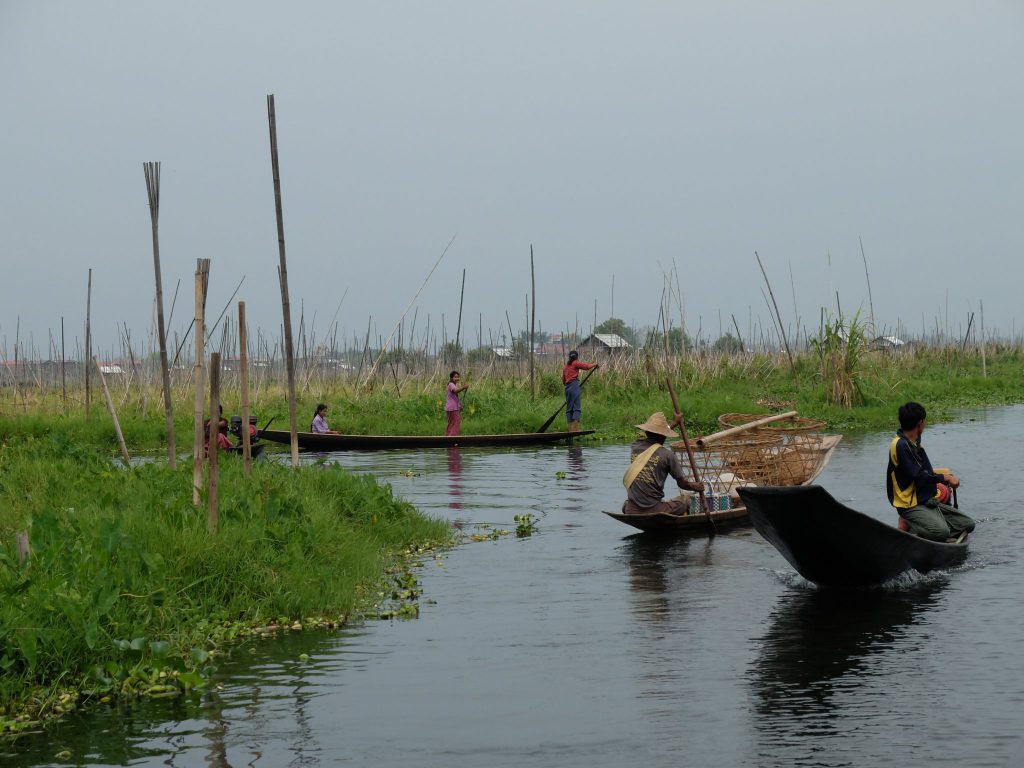 De floating gardens waren gaaf, eten verbouwen op het water, hoe dan? Een local vertelde me later dat ze eilanden in kleine stukjes hakken en daarop verbouwen en dat vastzetten met stokken.