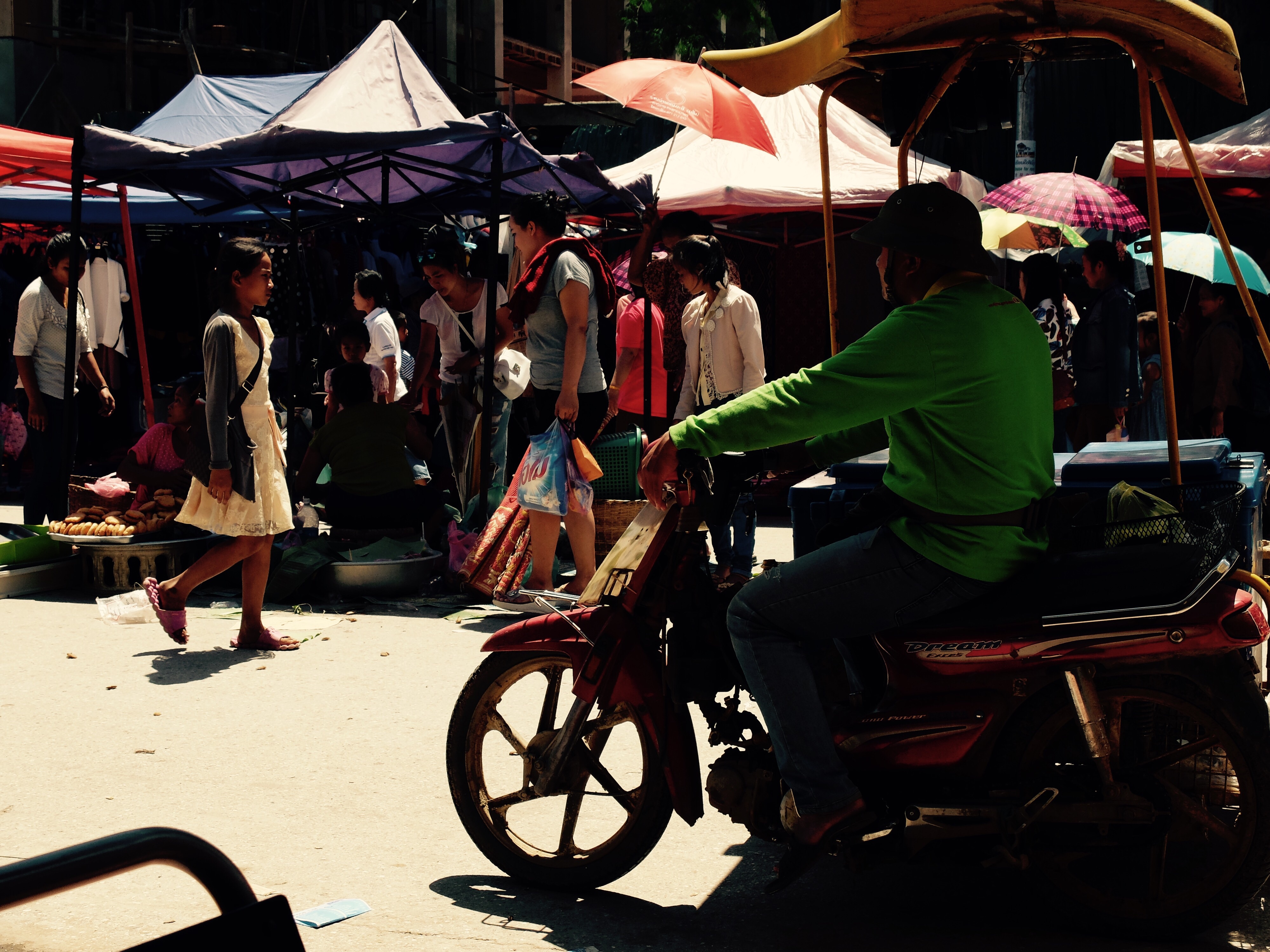 Ik heb een fietsje gehuurd, lopend is het te ver om bij het centrum te komen. De buurt kent me inmiddels, ik word gegroet met teacher Milou en sabaidee (hallo) terwijl de handen bij elkaar zijn zoals iemand die bid, met kleine buiging.