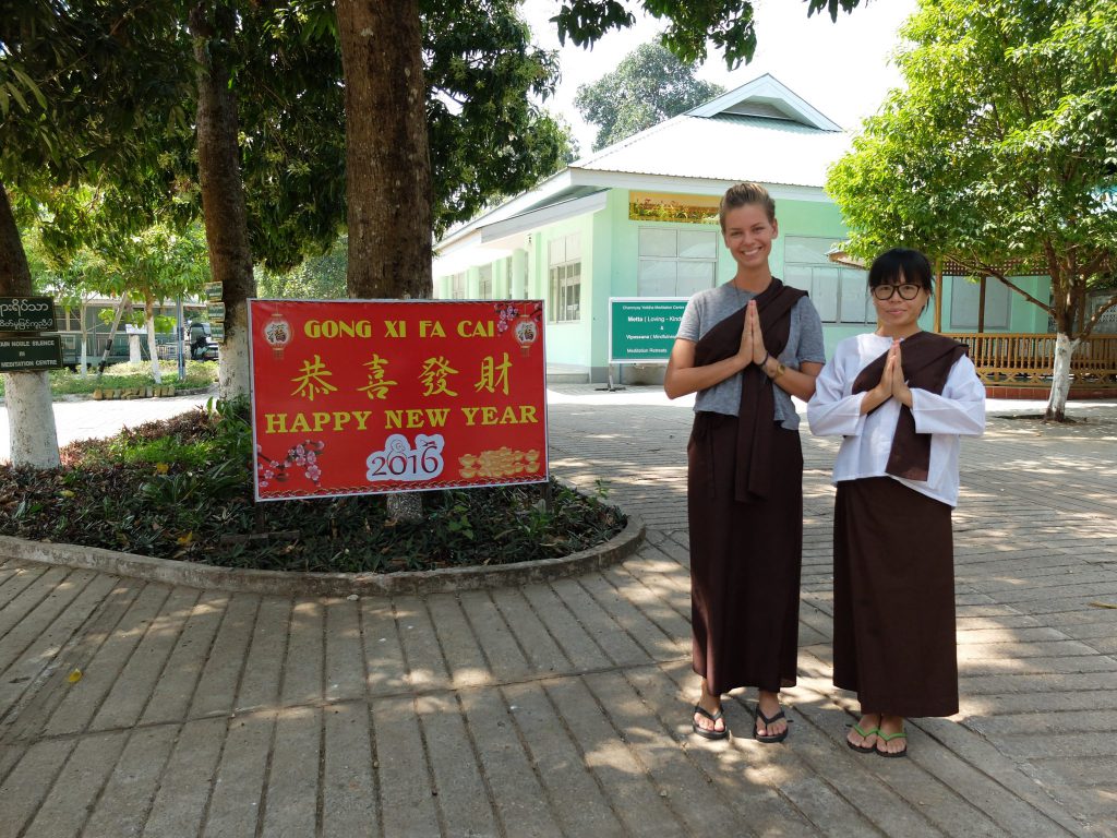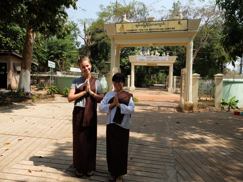 Ik lig op bed en probeer me te concentreren op mijn ademhaling. Kort geleden moest ik al mijn waardevolle spullen afgegeven bij het kantoor van het Chanmyay Yeiktha meditation centre, de plek waar ik tien dagen ga mediteren in stilte. Niks kan me nog afleiden nu, behalve: mijn gedachten. Mijn hoofd ontploft zowat, zoveel zijn het er en uit verschillende categorieën. Ik ben vandaag met een Chinees meisje wat ik eerder heb leren kennen gearriveerd en ik weet niet goed of het goed of minder goed is dat ze met me meegekomen is. Naast het feit dat ik gewend was aan het idee het alleen te gaan doen, is het tijdens deze retreat namelijk de bedoeling dat je met niemand praat, alleen met de monnik en je je niet af laat leiden. We hebben samen een kamer en dat verbaasd ons dus ook.