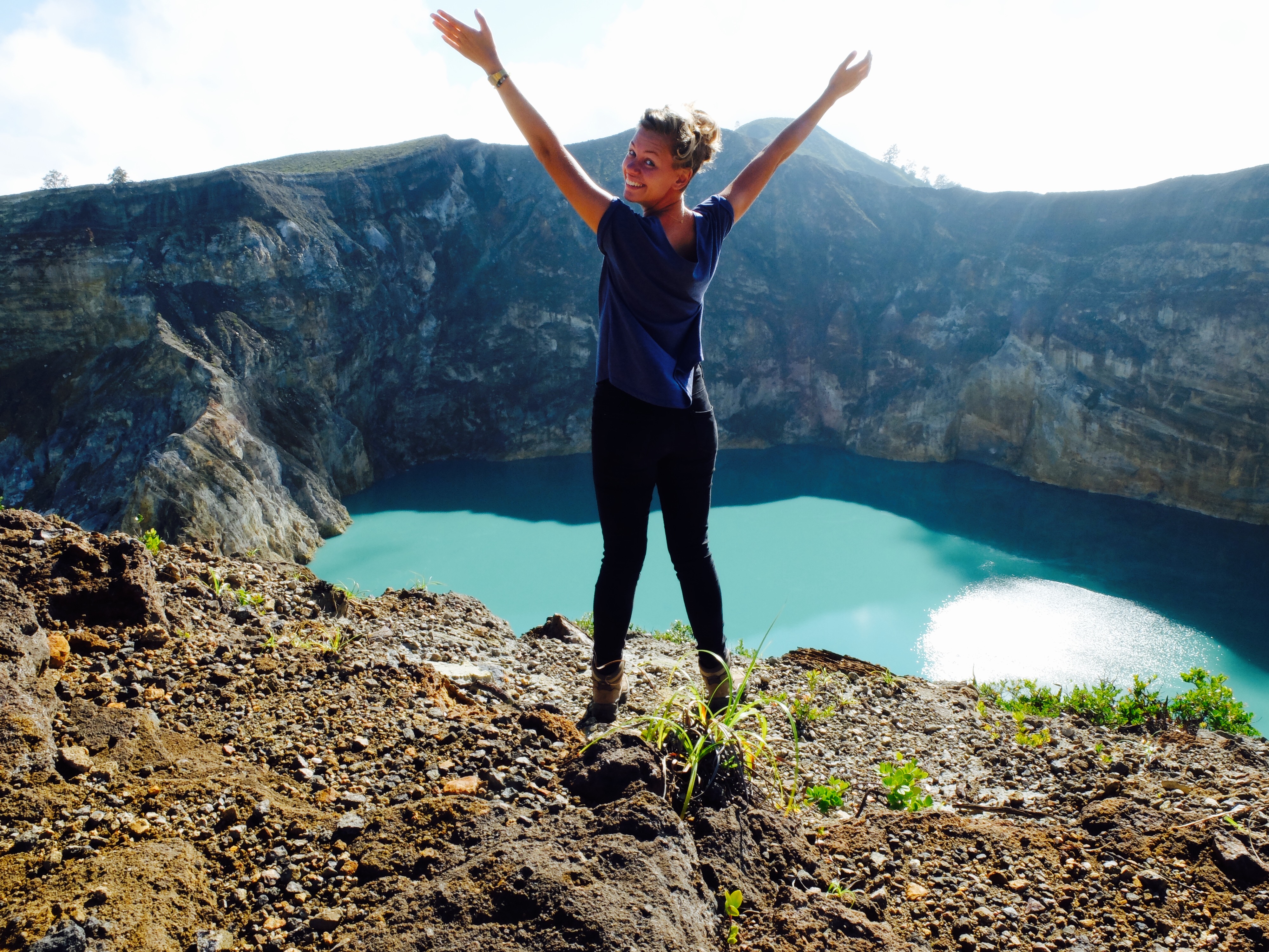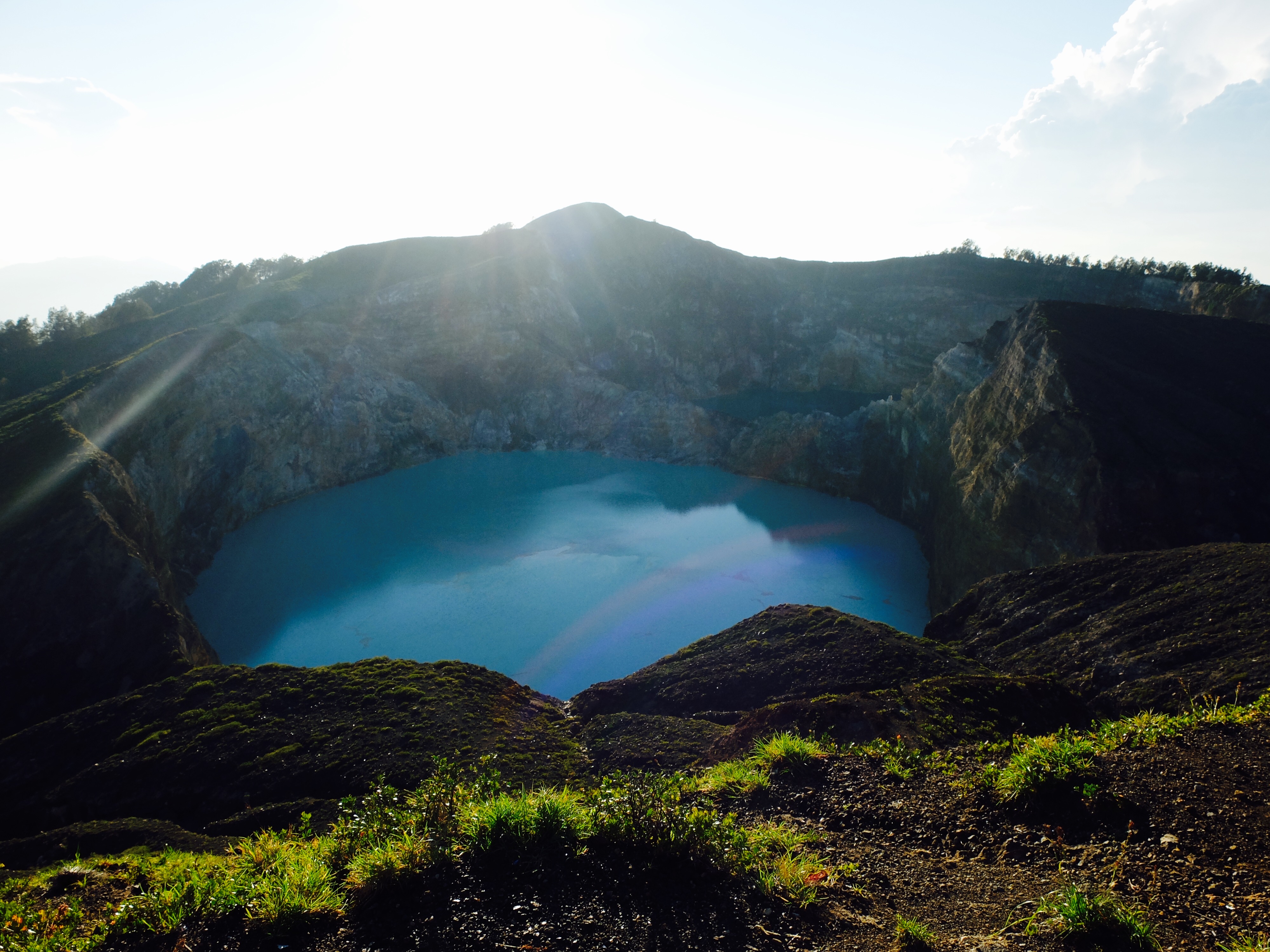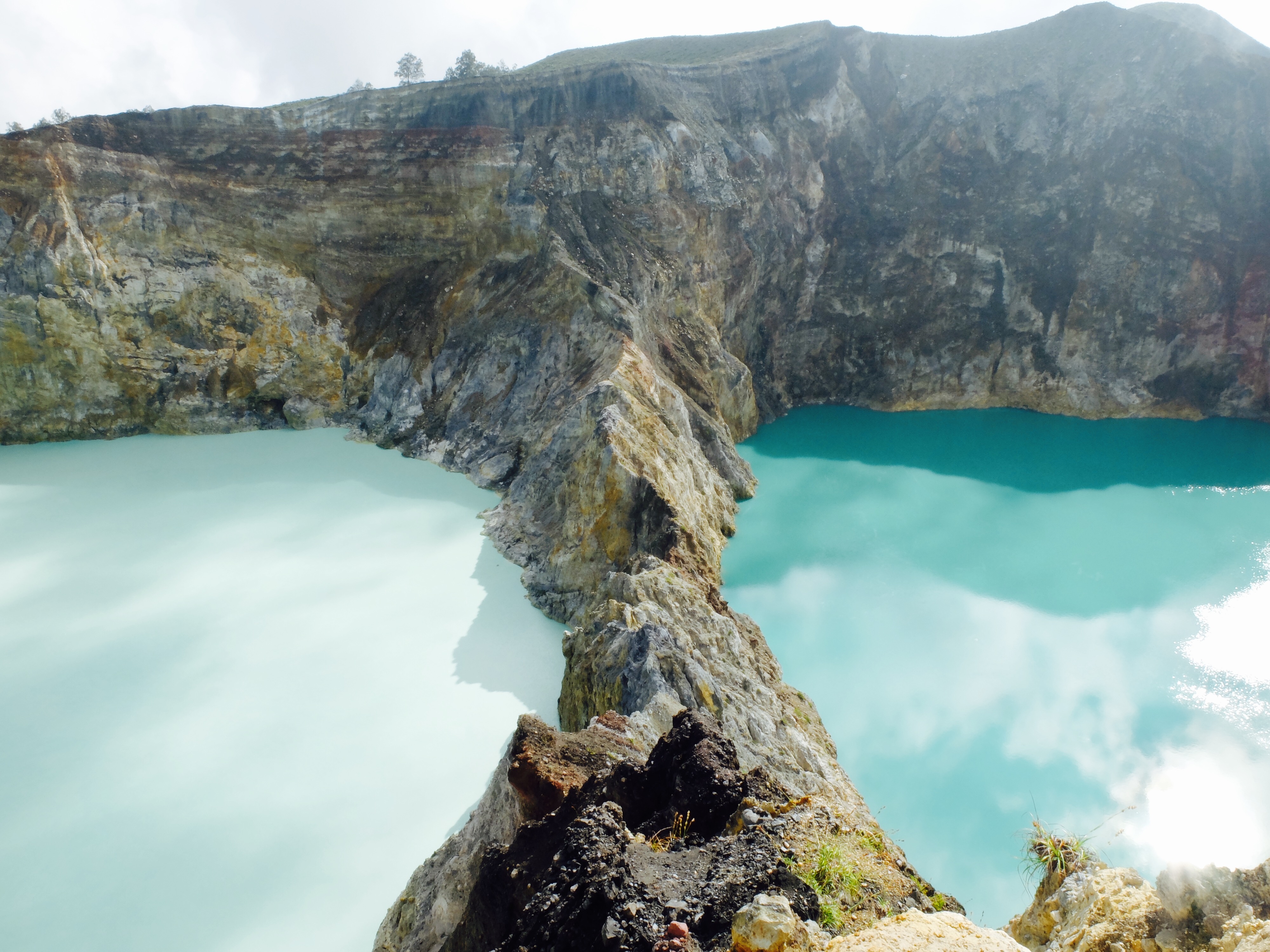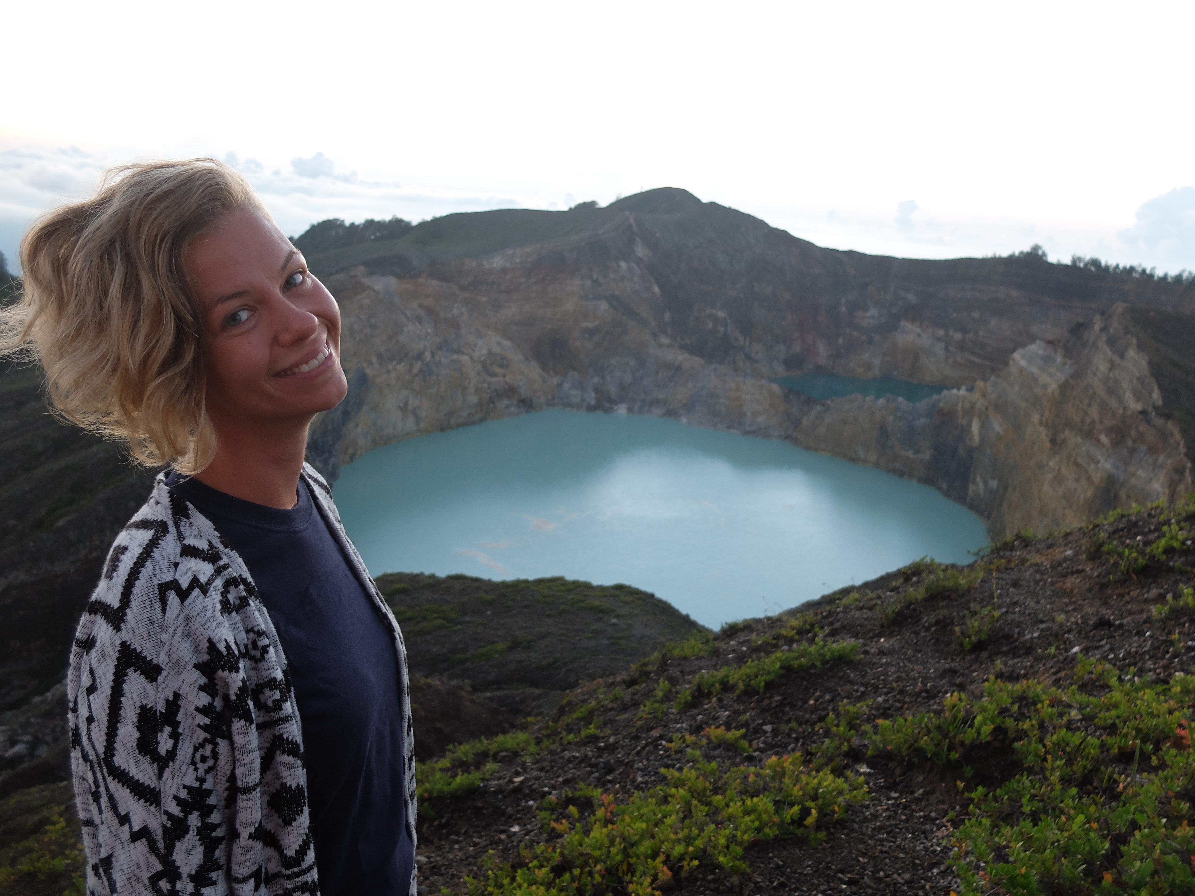 Om 4 am haalde Udin me op en we scheurden op zijn motor naar de vulkaan. En wat voor een motor, dikke adrenalinerush. Aangekomen bij het viewpoint (niet ver lopen) waren we de eersten en was het nog donker. De zonsopgang was erg mooi en de twee meren van de vulkaan werden langzaam zichtbaar. Ik kwam Ier Colin tegen, wie per toeval ook Flores wilde verlaten en de kant van Lombok op wilde. We spraken af om samen te gaan en hij vertrok. Ik kocht een sjaal bij en vrouwtje waar ze twee maanden aan heeft gewerkt, met komodoos en gekkoos erop en de scenery van Flores, heel blij mee. We dronken koffie en ginger thee, wat ik gratis kreeg, vermoedelijk omdat ik mn bahasa oefende. Toen de zon later hoger stond liepen Udin en ik met een spaans koppel eerst naar de andere zijde, waar de wolken net opgetrokken waren en een groen meer te zien was. Aan de viewpoint kant konden we dichterbij de andere meten komen, welke unreal mooi waren. Lichtblauw en turquoise met een swirl van sulfer in een van de twee. De fotos zijn goed uitgepakt, al zeg ik het zelf. Men gelooft dat als een persoon overlijd, de spirit naar een van de drie meren gaat en natuurlijk hangt het ervan af hoe goed je hebt geleefd en ook hoe oud je was, waar je terecht komt.