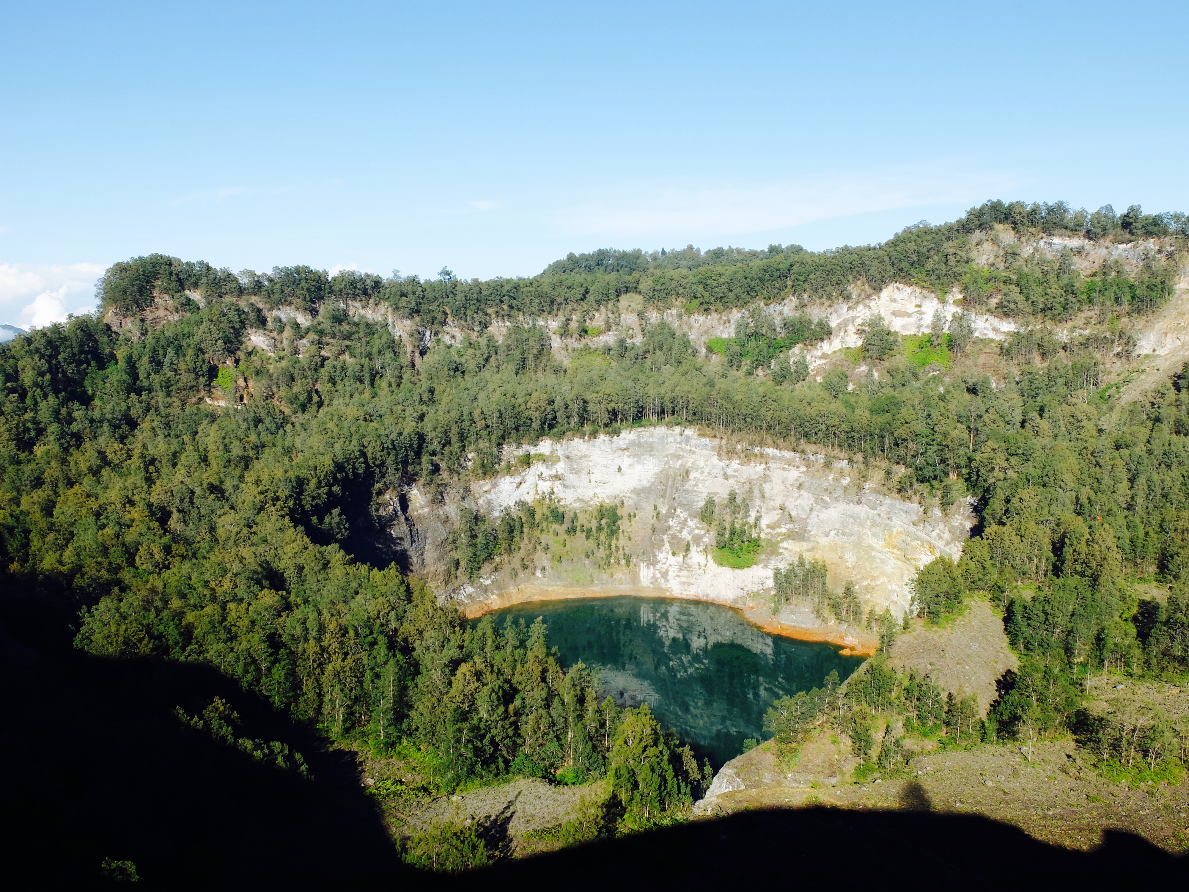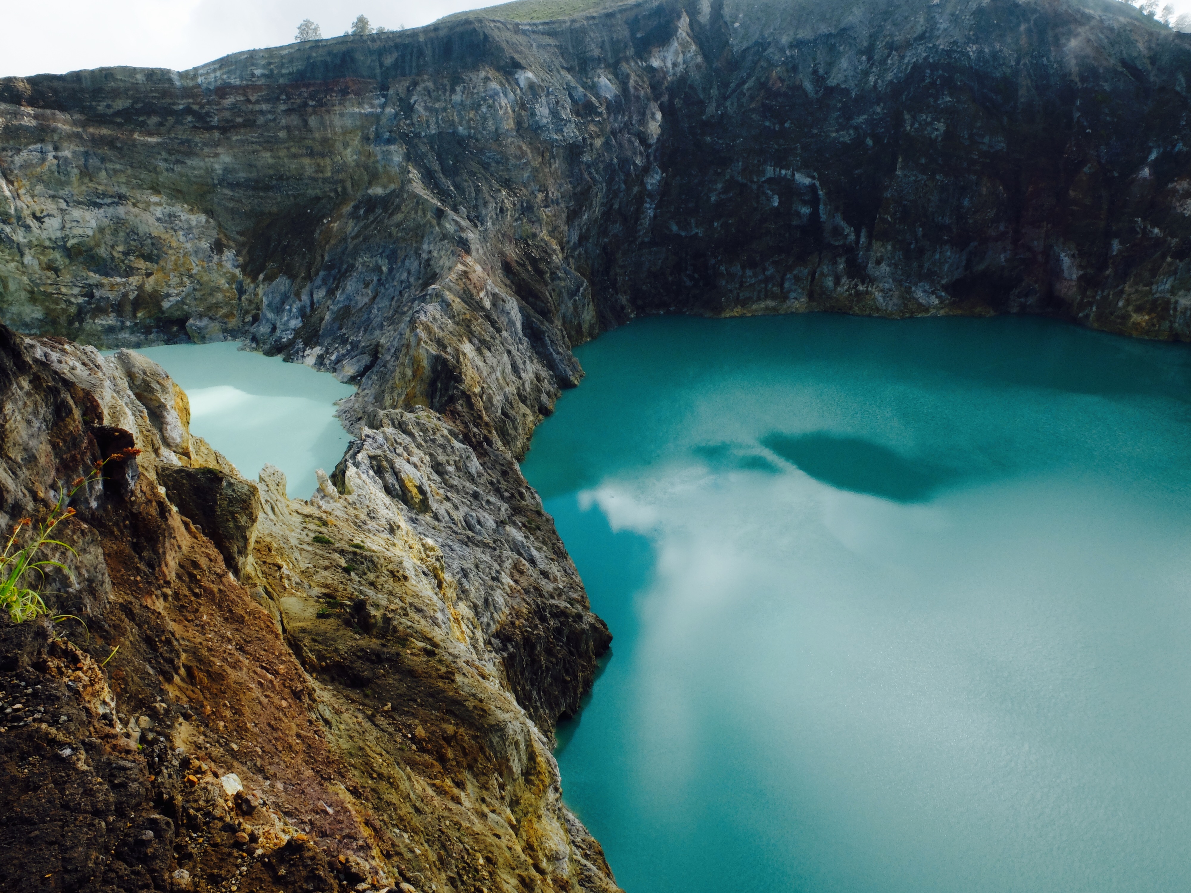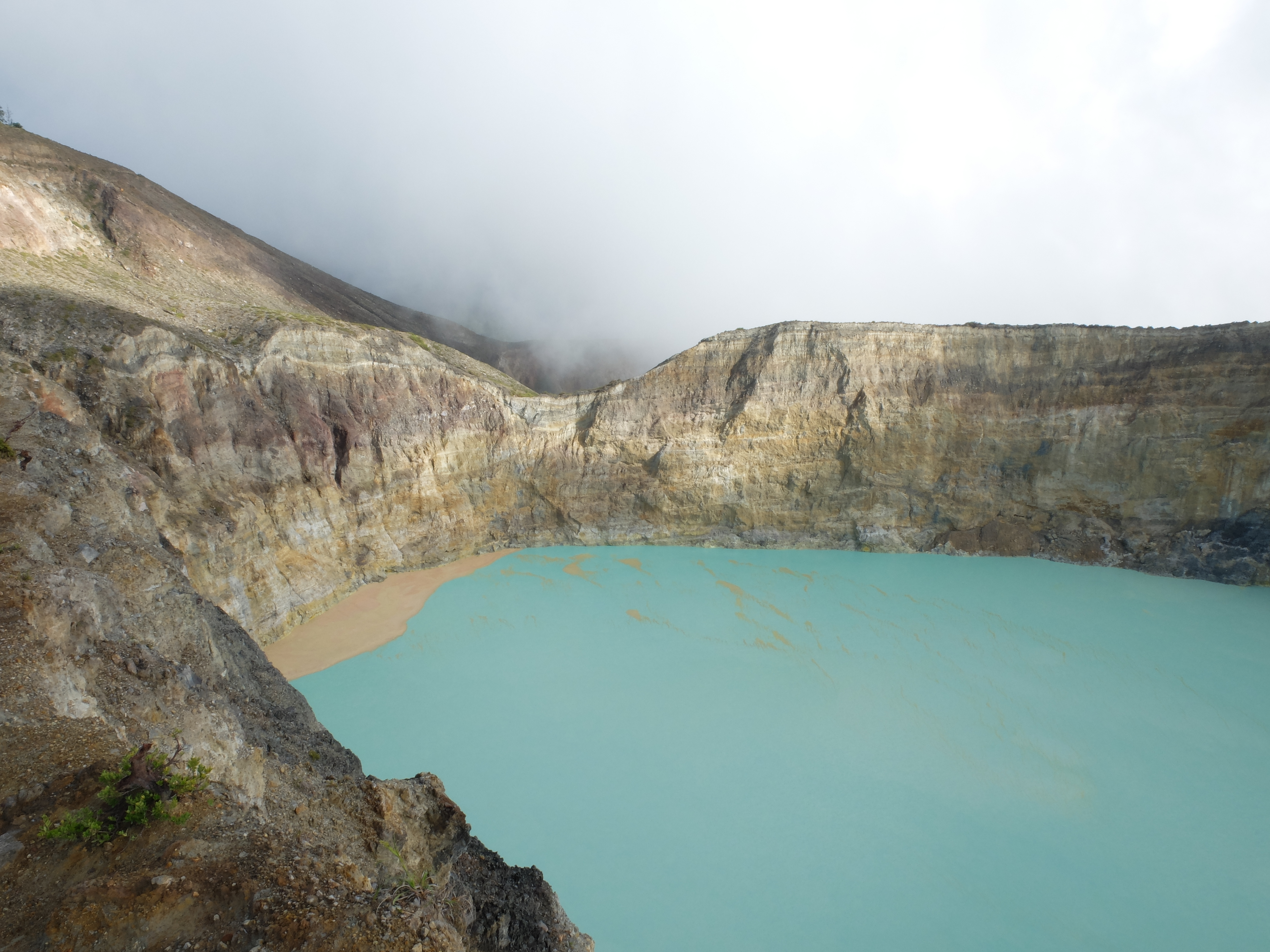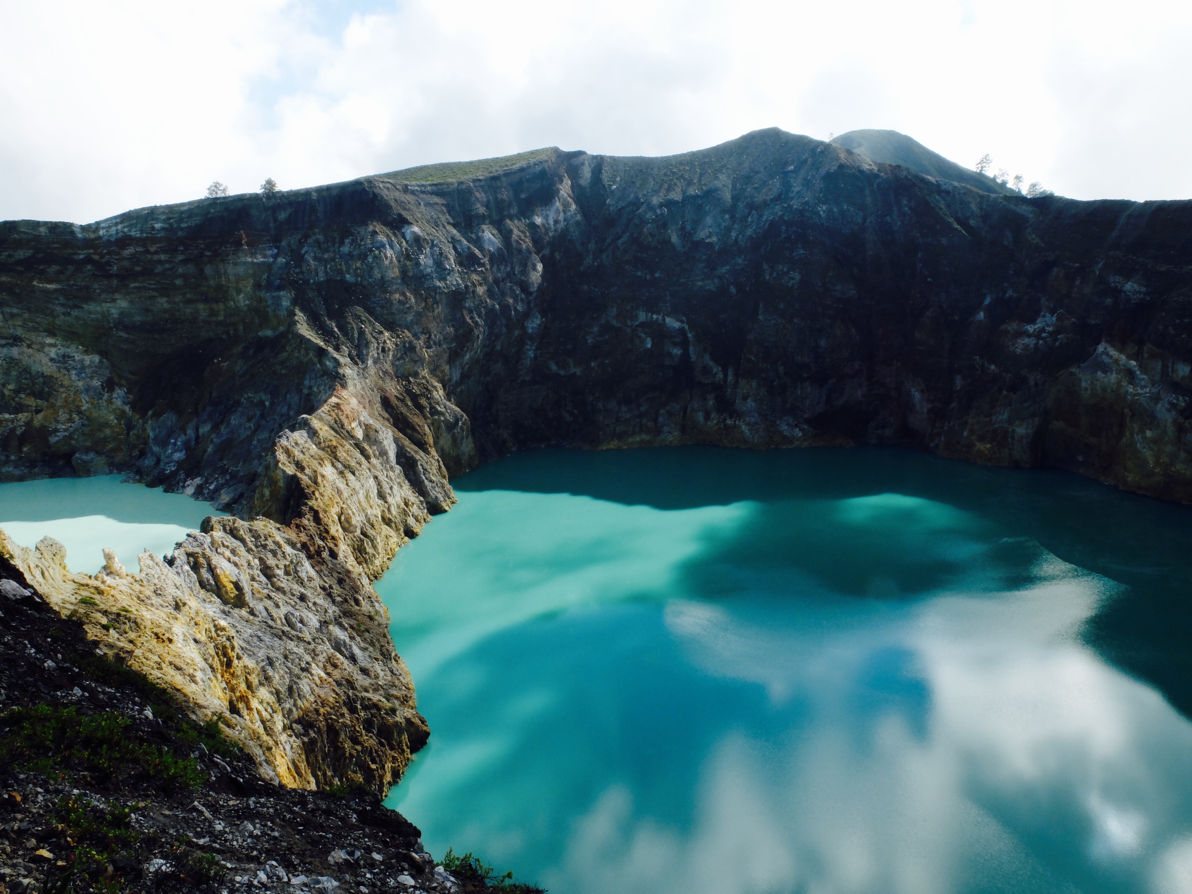 Om 4 am haalde Udin me op en we scheurden op zijn motor naar de vulkaan. En wat voor een motor, dikke adrenalinerush. Aangekomen bij het viewpoint (niet ver lopen) waren we de eersten en was het nog donker. De zonsopgang was erg mooi en de twee meren van de vulkaan werden langzaam zichtbaar. Ik kwam Ier Colin tegen, wie per toeval ook Flores wilde verlaten en de kant van Lombok op wilde. We spraken af om samen te gaan en hij vertrok. Ik kocht een sjaal bij en vrouwtje waar ze twee maanden aan heeft gewerkt, met komodoos en gekkoos erop en de scenery van Flores, heel blij mee. We dronken koffie en ginger thee, wat ik gratis kreeg, vermoedelijk omdat ik mn bahasa oefende. Toen de zon later hoger stond liepen Udin en ik met een spaans koppel eerst naar de andere zijde, waar de wolken net opgetrokken waren en een groen meer te zien was. Aan de viewpoint kant konden we dichterbij de andere meten komen, welke unreal mooi waren. Lichtblauw en turquoise met een swirl van sulfer in een van de twee. De fotos zijn goed uitgepakt, al zeg ik het zelf. Men gelooft dat als een persoon overlijd, de spirit naar een van de drie meren gaat en natuurlijk hangt het ervan af hoe goed je hebt geleefd en ook hoe oud je was, waar je terecht komt.