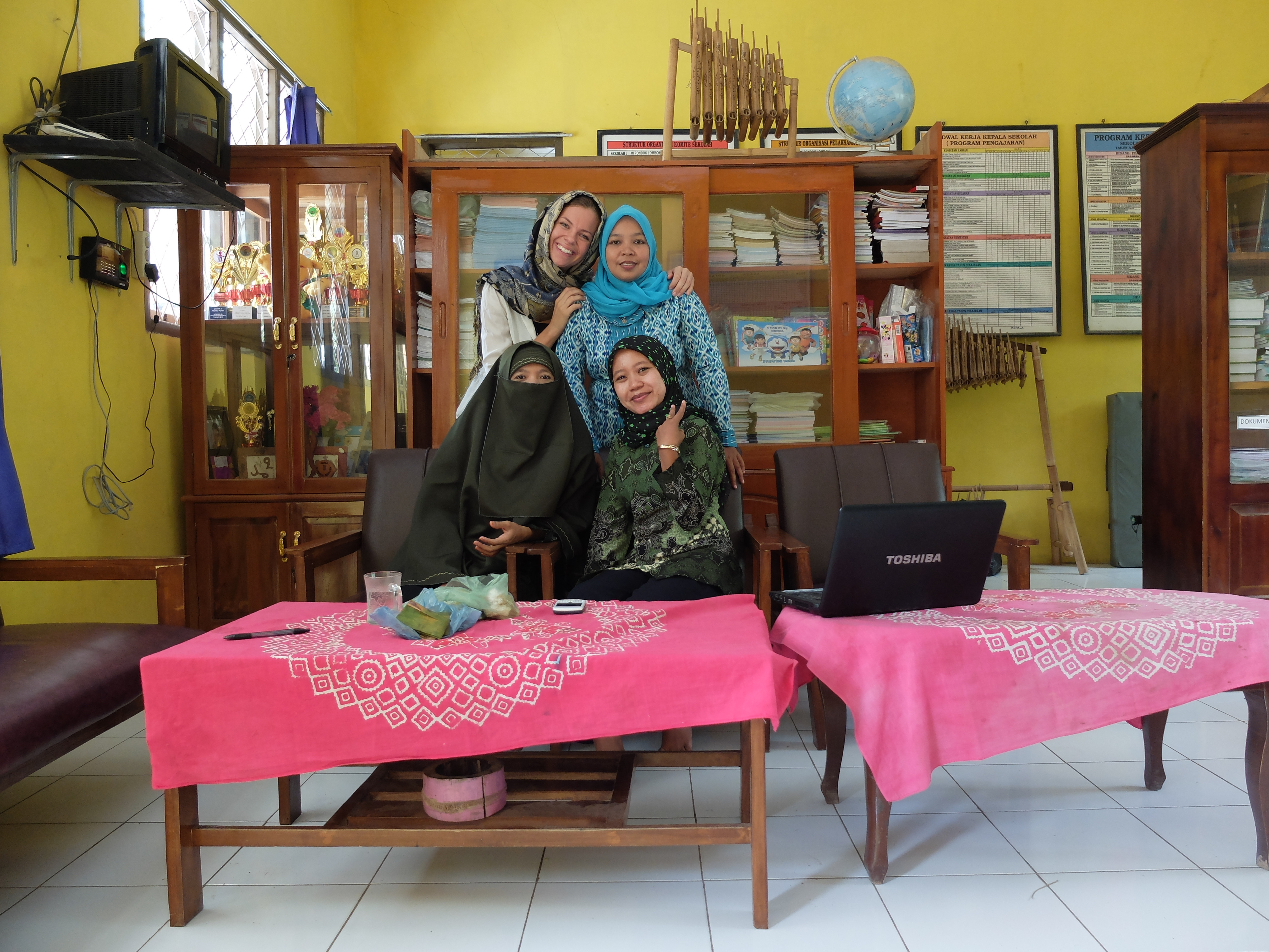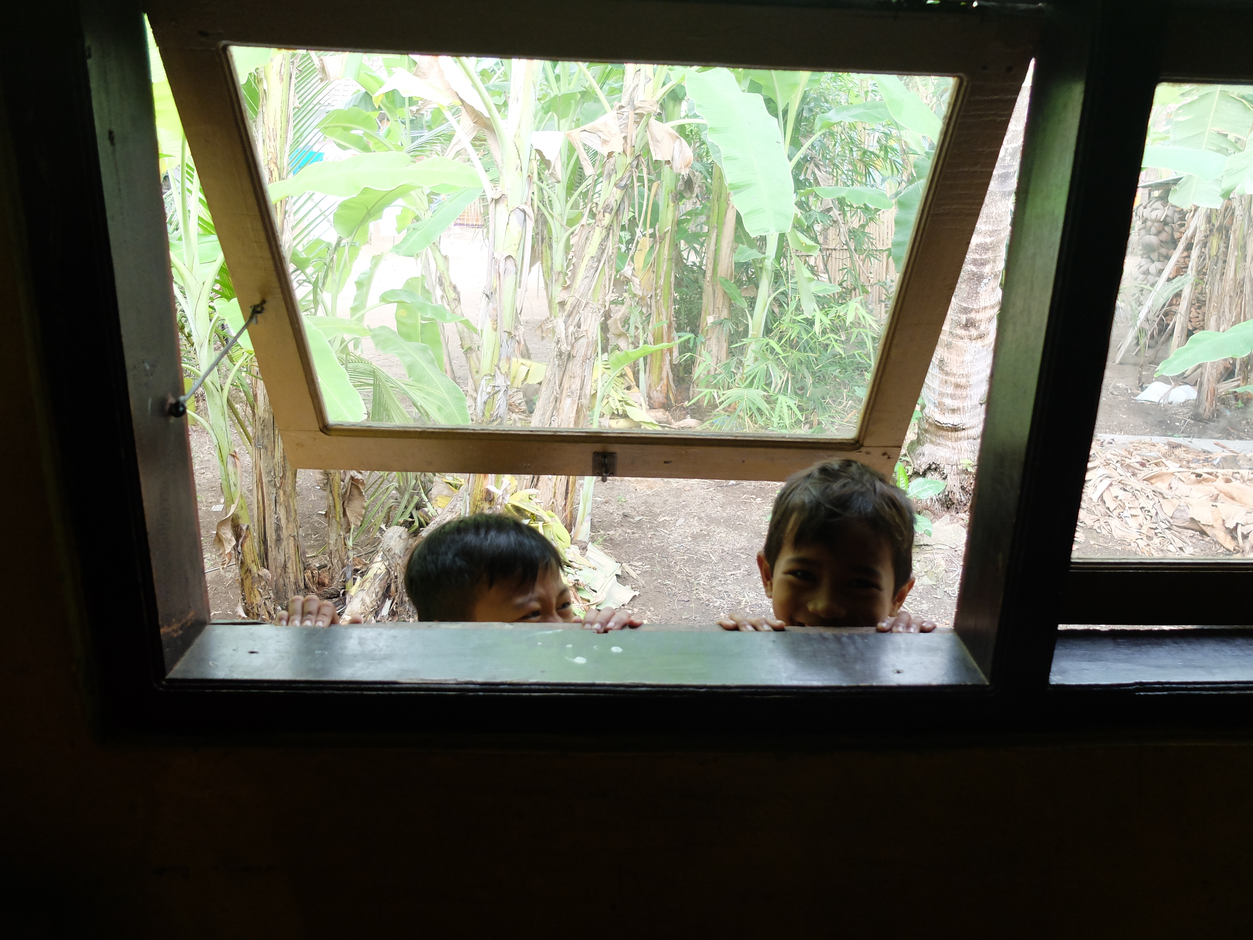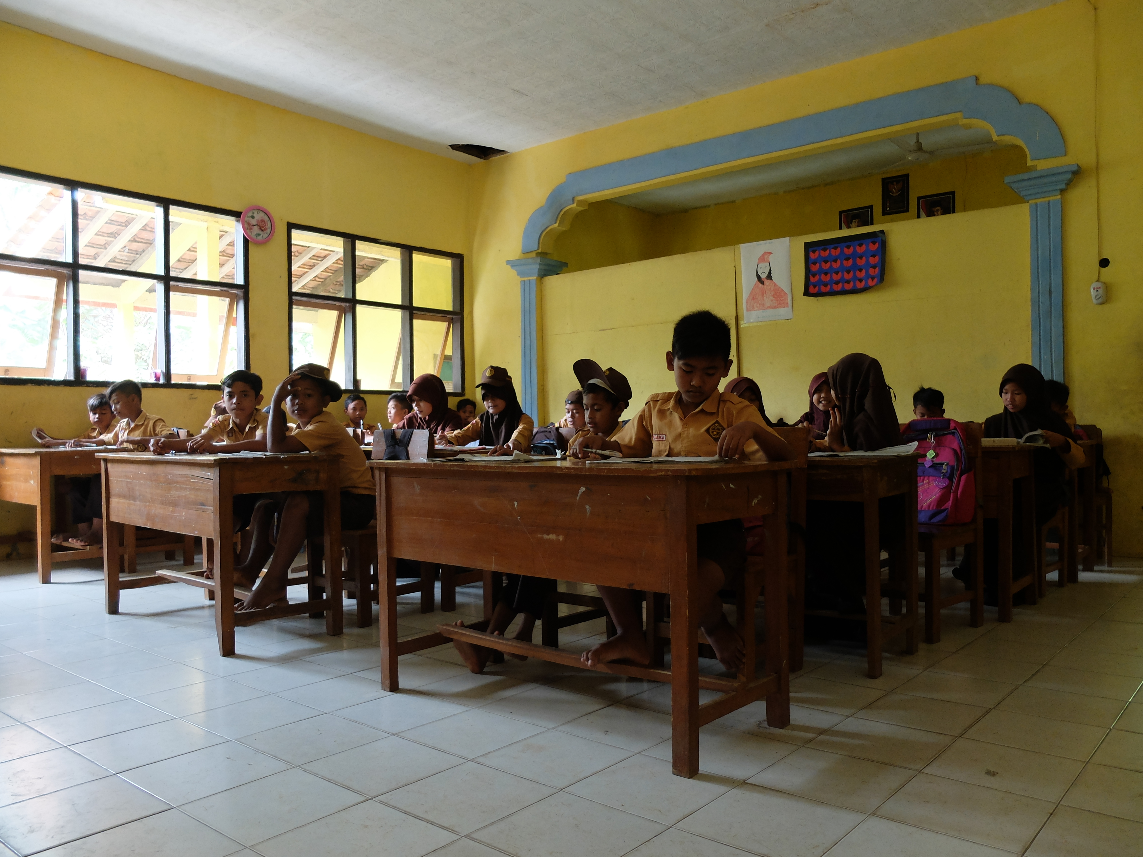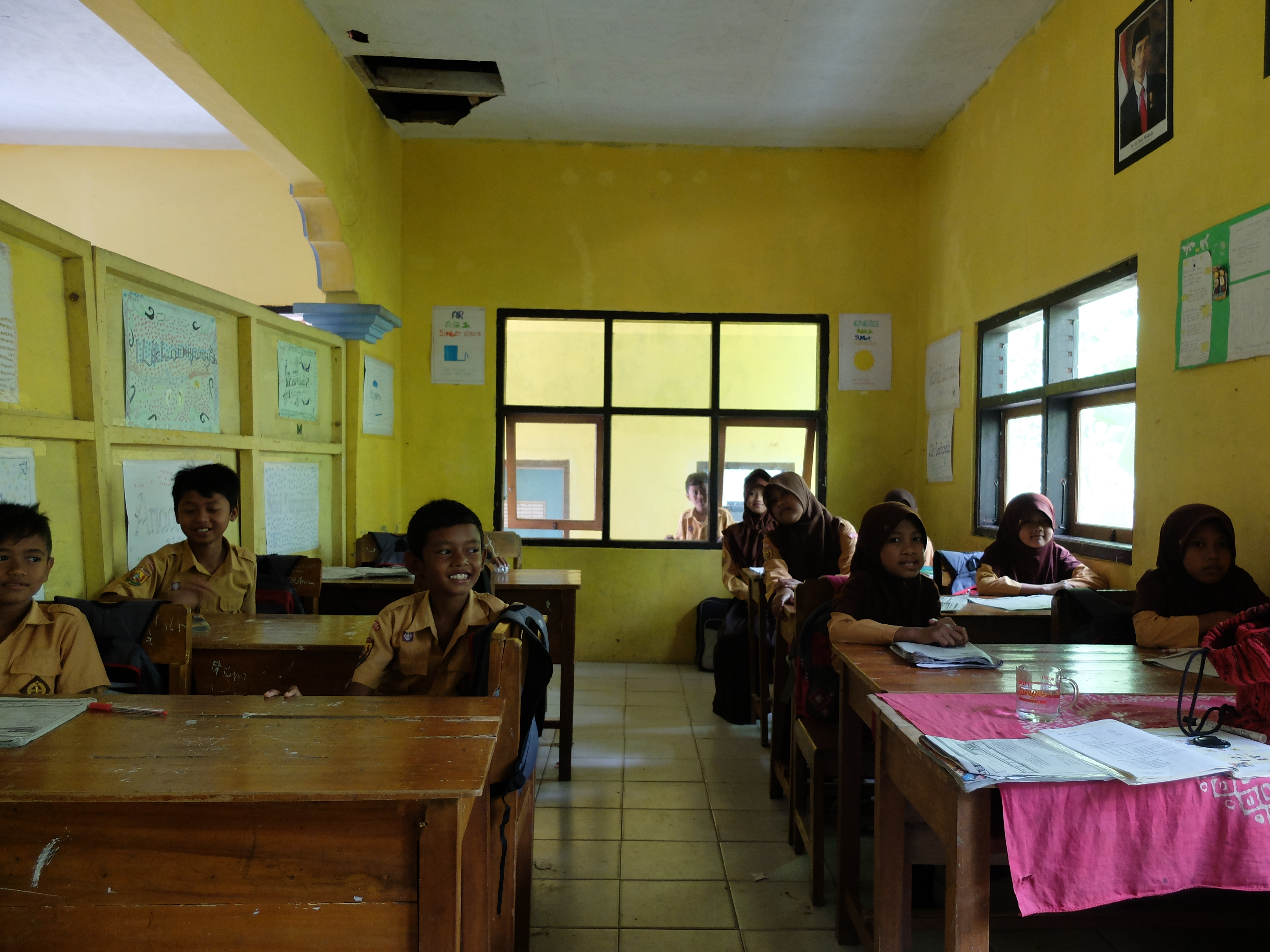 Toen ik mijn ogen opende hoorde ik de vader van de familie goodmorning oefenen. Zachtjes deed ik de deur open en hij draaide heel snel naar me toe met een grote glimlach. Goodmorning! Mijn dag was meteen gemaakt. En hij leek in het begin zo ongeïnteresseerd. Mijn intuïtie zei toen al dat de kans groot is dat hij het spannend vond, de eerste toerist ooit in dorp en dan ook nog in zijn huis. En daarbij ook nog eens geen woord engels spreekt. Ik deed de mandi, begint te wennen. Het was zes uur. Het duurde twee en half uur voordat ik op de school was, de Indonesische way of living. Onderweg familie bezoeken, roti, soort brood, kopen. Mensen die van verbazing bijna van hun veranda afvielen; de eerste bule, toerist, in het dorp ooit. Ik lachte en zwaaide maar, in het begin voelde het heel ongemakkelijk; ik wilde niet als indringer gezien worden. Ik liet het maar los, kon me er wel druk over maken, maar zou hier toch nog de aanstaande dagen verblijven. Dus beter het beste van maken! De skola was weer heel anders dan die in Laos. Ik moest gesluierd en sommige andere vrouwen hadden een boerka. De kinderen kwamen niet meer bij. Ik denk dat sommige nog nooit een 'blanke' gezien hadden. Lesgeven was heel heftig, tenminste op deze dag, weet niet hoe het op andere dagen is. Er werd muziek gemaakt naast me, de kinderen in de andere klas braken t lokaal af, ik moest schreeuwen om er bovenuit te komen. Maar ze luisterden wel, ze waren vooral erg onder de indruk denk ik. Ook hier trouwens een sedikit, kleine, candyshop. Tijdens mijn les kwamen er steeds andere kinderen binnen via de deur maar er hingen er ook een paar aan de ramen. Waar waren de leerkrachten? Achja er moet ook gegeten worden toch en gebruik gemaakt worden van de wifi in het dorp om youtube te kijken… Hihi. Bovendien waren de kinderen niet meer te hiuden. School was om elf uur alweer klaar, de kinderen vrij. Bizar dat die kleine kindjes gewoon een motor besturen; het enige vervoersmiddel in het dorp.