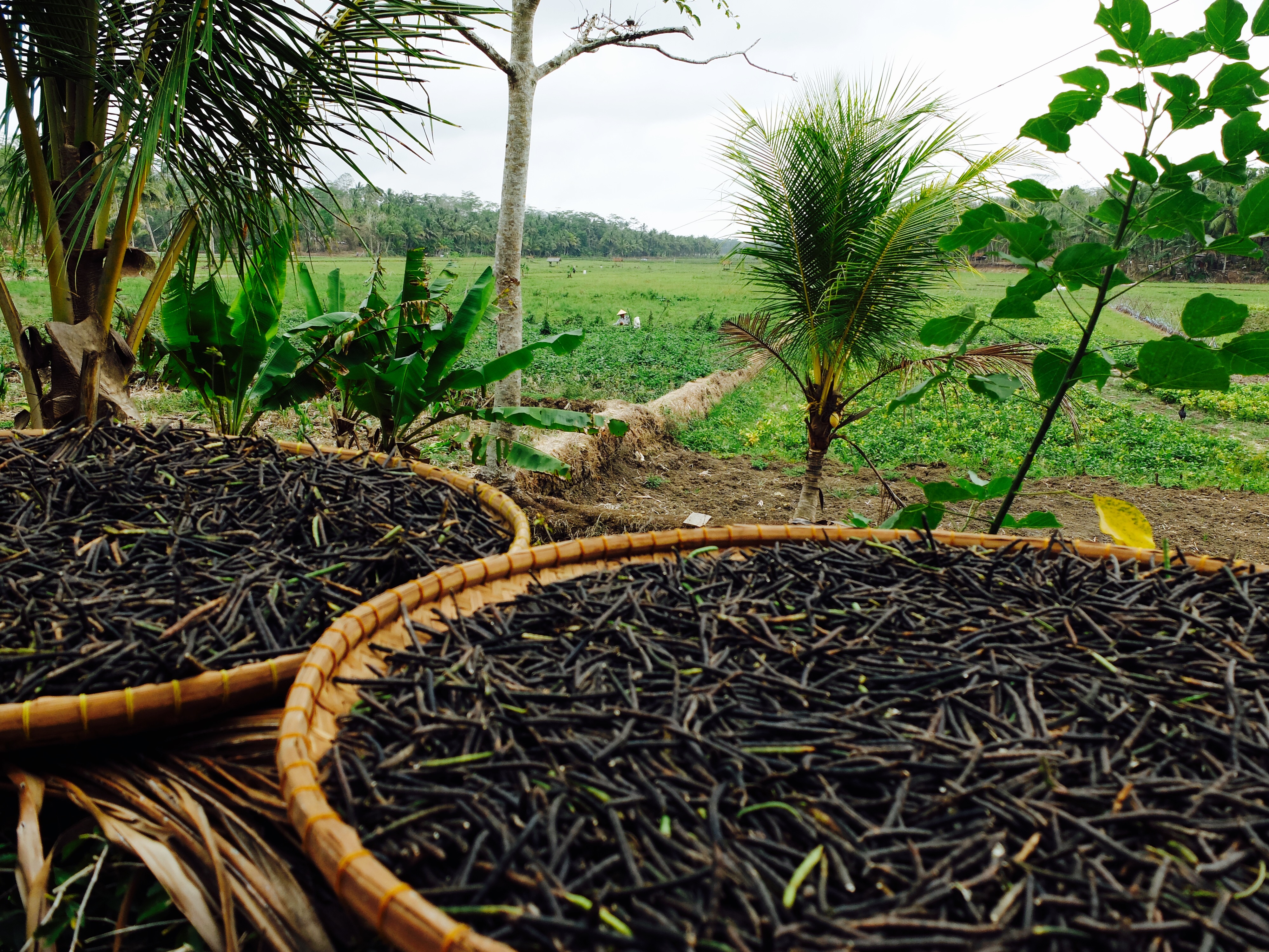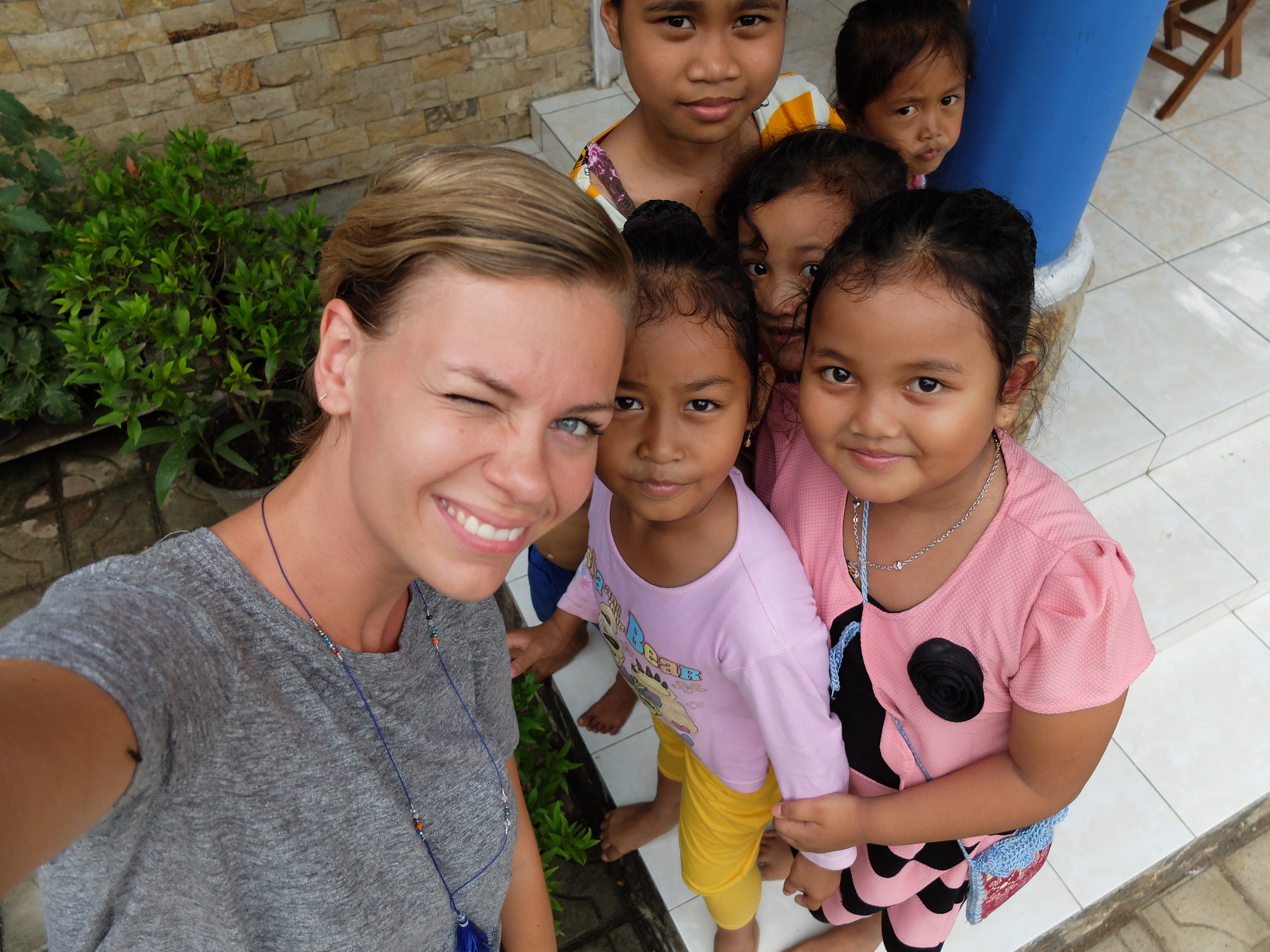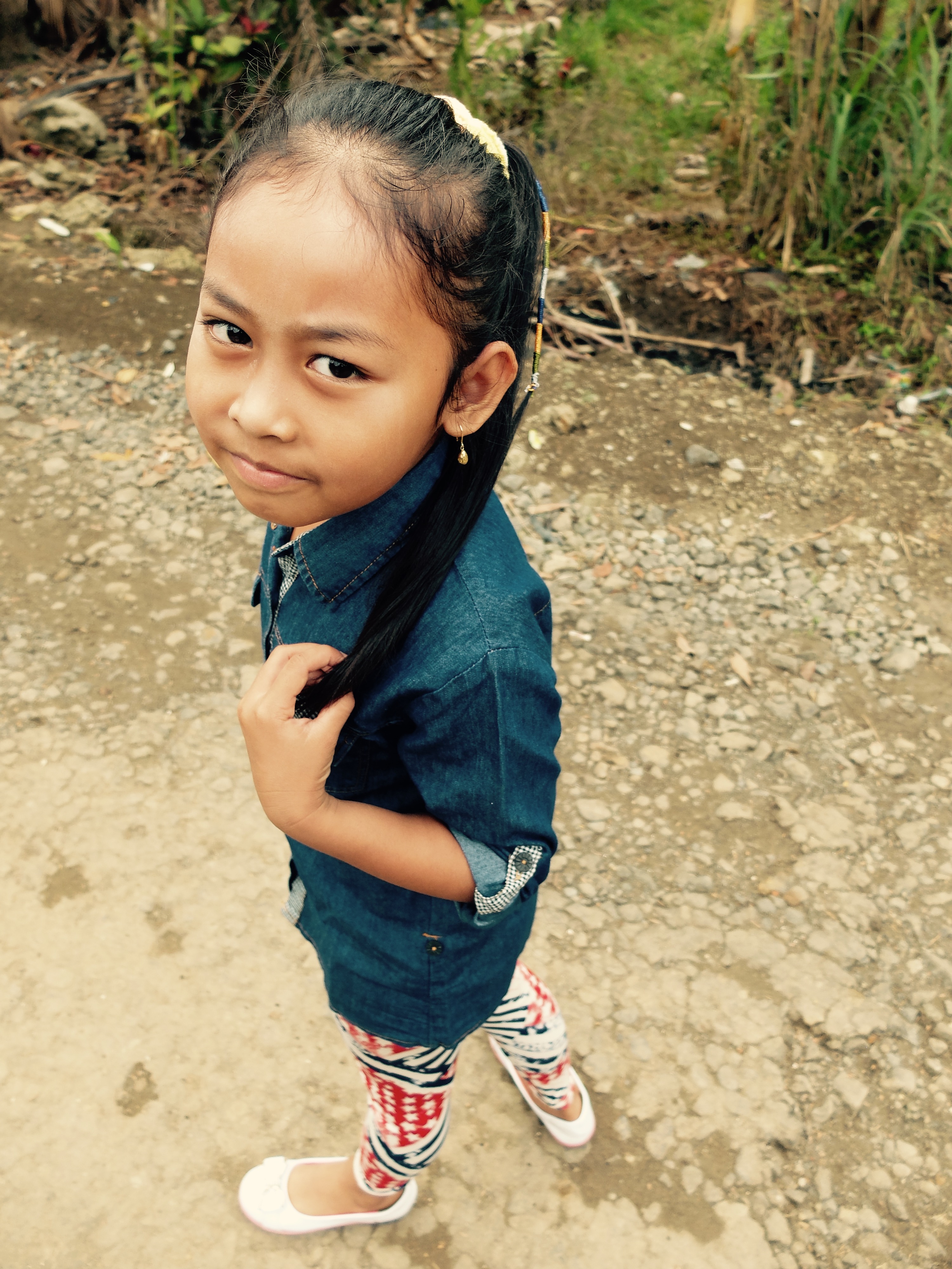 In de middag was ik een soort oppas, had een horde kids op sleeptouw die graag Engels wilden leren en selfies maken met mijn camera. Was eigenlijk ook wel heel schattig. De buren nodigden me uit, allerlei mensen kwamen kennis maken. Ik sliep een uur toen de ouders weer terug waren. S avonds kookten we samen, (en ik leerde hoe je de echte nasi goreng maakt) en aten we op de vloer en deden we pogingen om elkaar te begrijpen. Oma drukte een peuk uit op haar tong. Er werd een schaal met eten in mijn hand gedrukt en ik werd meegenomen naar buiten, met zeer geringe uitleg. Alle vrouwen zaten samen en het leek net of ze op mij aan het wachten waren. Ik gaf iedereen een hand en drukte die tegen mn voorhoofd, zoals iemand me voordeed. Ze wilden graag foto's, dus ik maakte die, het voelde ook erg vreemd doch bijzonder. Er was een bijeenkomst met heel veel makan, eten. Ik haakte af na een half uur, die aandacht werd me echt even teveel. Indomama, Iis, volgde me gelukkig en niet veel later was het gezin weer compleet. We gaven elkaar cadeautjes; ze waren zo blij met de klompjes uit Holland! En ik gaf kleren weg. In de loop van de volgende dag merkte ik dat mn Bahasa al wat beter werd. Tempe number satu, was een van mijn favorieten. Satu is een en tempe mijn lievelingseten. We gingen niet naar school, waarom vertelde ze me niet maar ik had zo een vermoeden dat het was omdat ik er was. Strange, want ik wilde de kinderen nog wel graag zien maar naar de sawa gaan vond ik ook wel een hele goede.