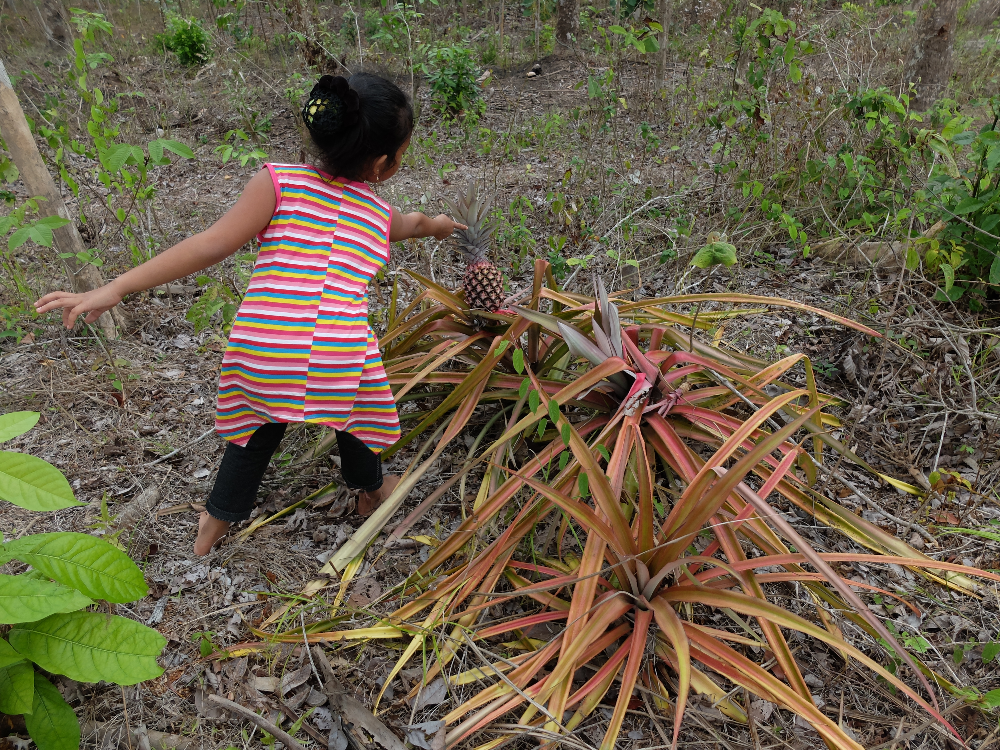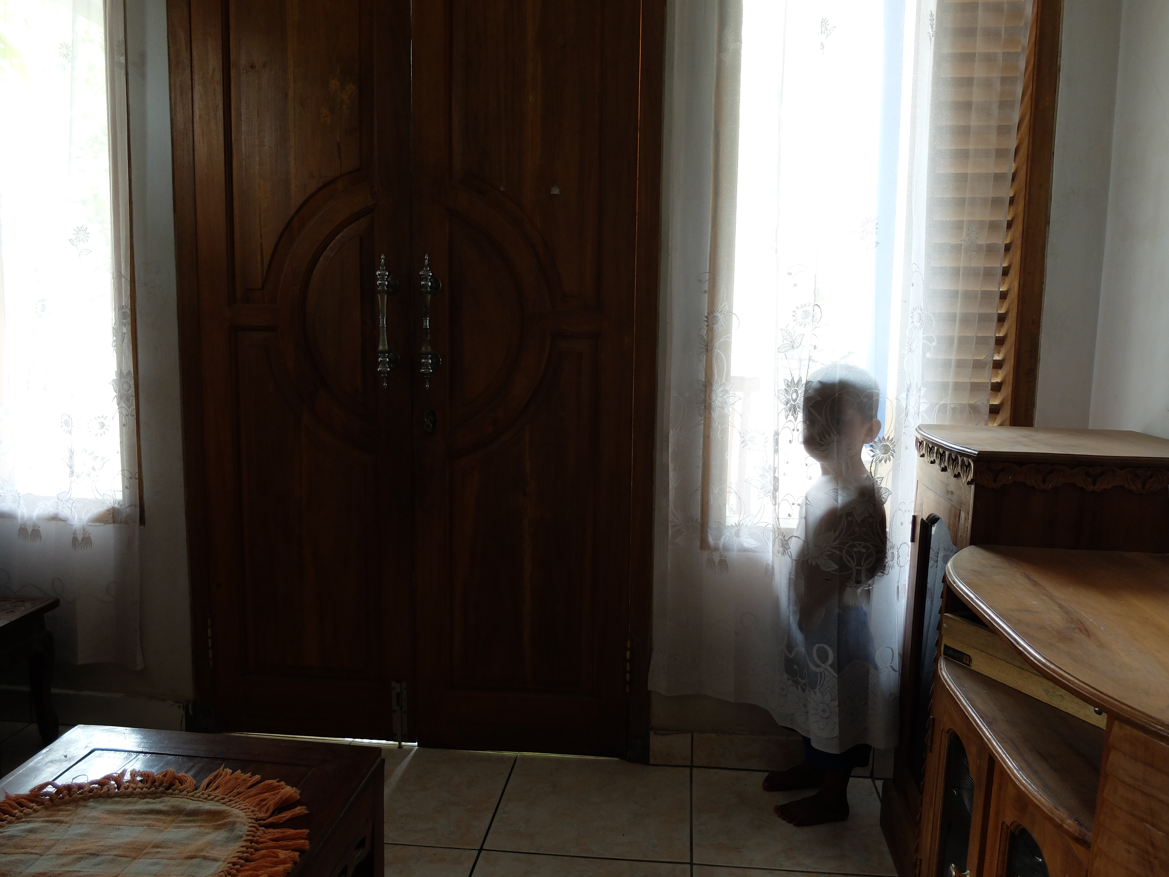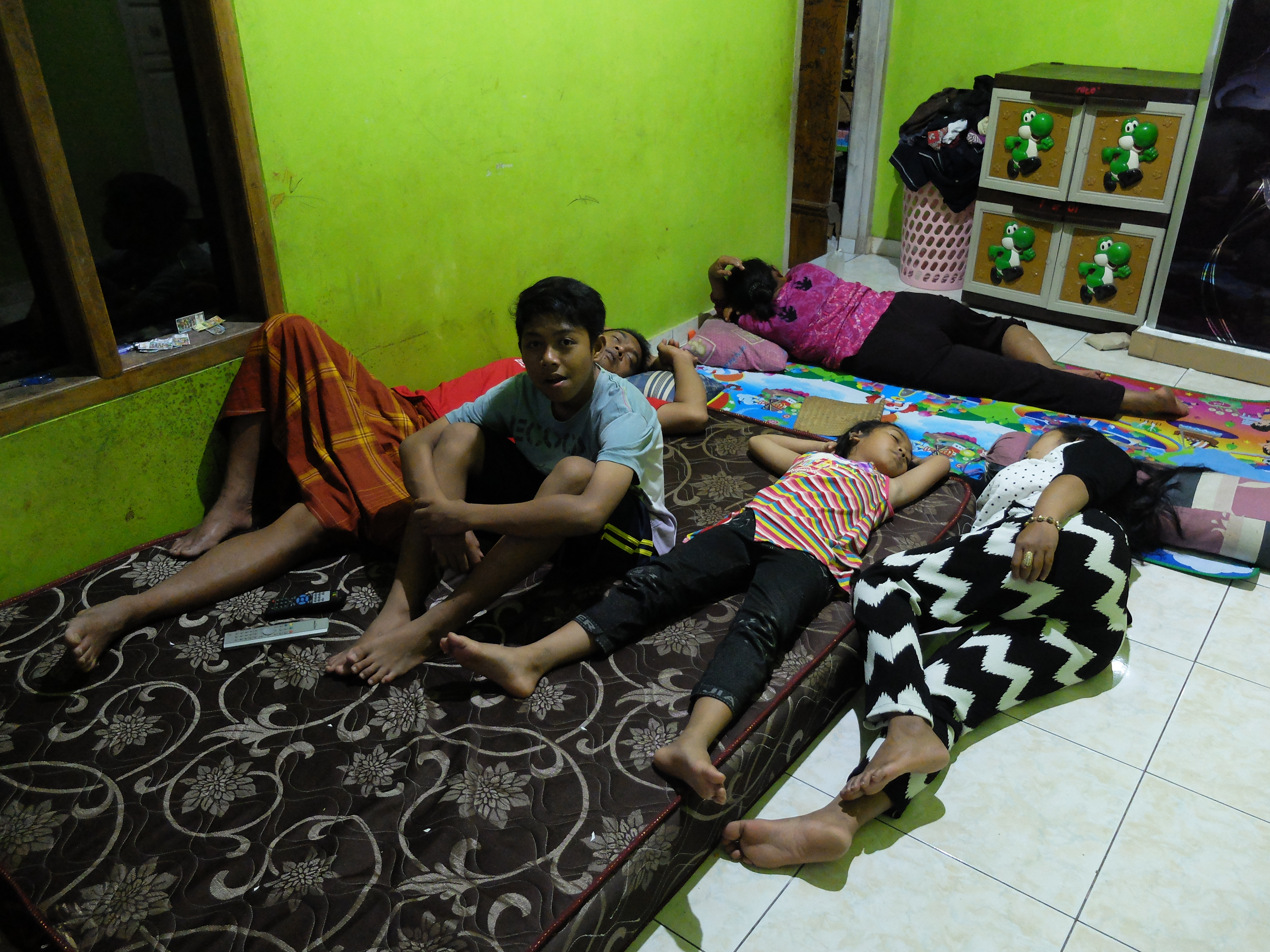 Ze lieten me het land zien, voor een groot deel zelfvoorzienend. Ik was erg onder de indruk. Het huis van opa en oma was traditioneel. Mandi in de voortuin met een superlaag plastic omheininkje, wat als schutting moest dienen. Ik liep van plek naar plek om de leden van de grote familie te ontmoeten. Ik kon al een beetje met ze spreken. Wat hoger, in het bos, vond ik wilde ananas. De familie sneed er een in stukjes en heb nog nooit in mijn leven zulke goede ananas geproefd. De smaak was zo vol. En ik werd bijna jaloers op ze. De boeren werken de hele dag op het land. Wat zo gek nog niet is. Ze hebben alles wat ze nodig hebben; eten, een huis, een partner. Ze zien er gelukkig uit. Wat wel heel erg is, is dat het regenseizoen nog niet echt is doorgebroken, waardoor alle nasi, rijst, dood is. Ik kookte weer met Iis en later aten we met het gezin en opa en oma, wat ontzettend goed smaakte, net als de lunch. We sliepen die nacht met zijn allen in een kamer, op een groot matras. Na t ontbijt liepen we terug door het bos. Ik verbleef die dag weer in het dorp bij het gezin, om tegen de avond terug te gaan en naar Jogja te rijzen. Ik werd meegenomen naar een motorcross wedstrijd en dat was toch wel een heel bizarre ervaring. Ik was t middelpunt van de attentie en dat voelde wel heel gek.