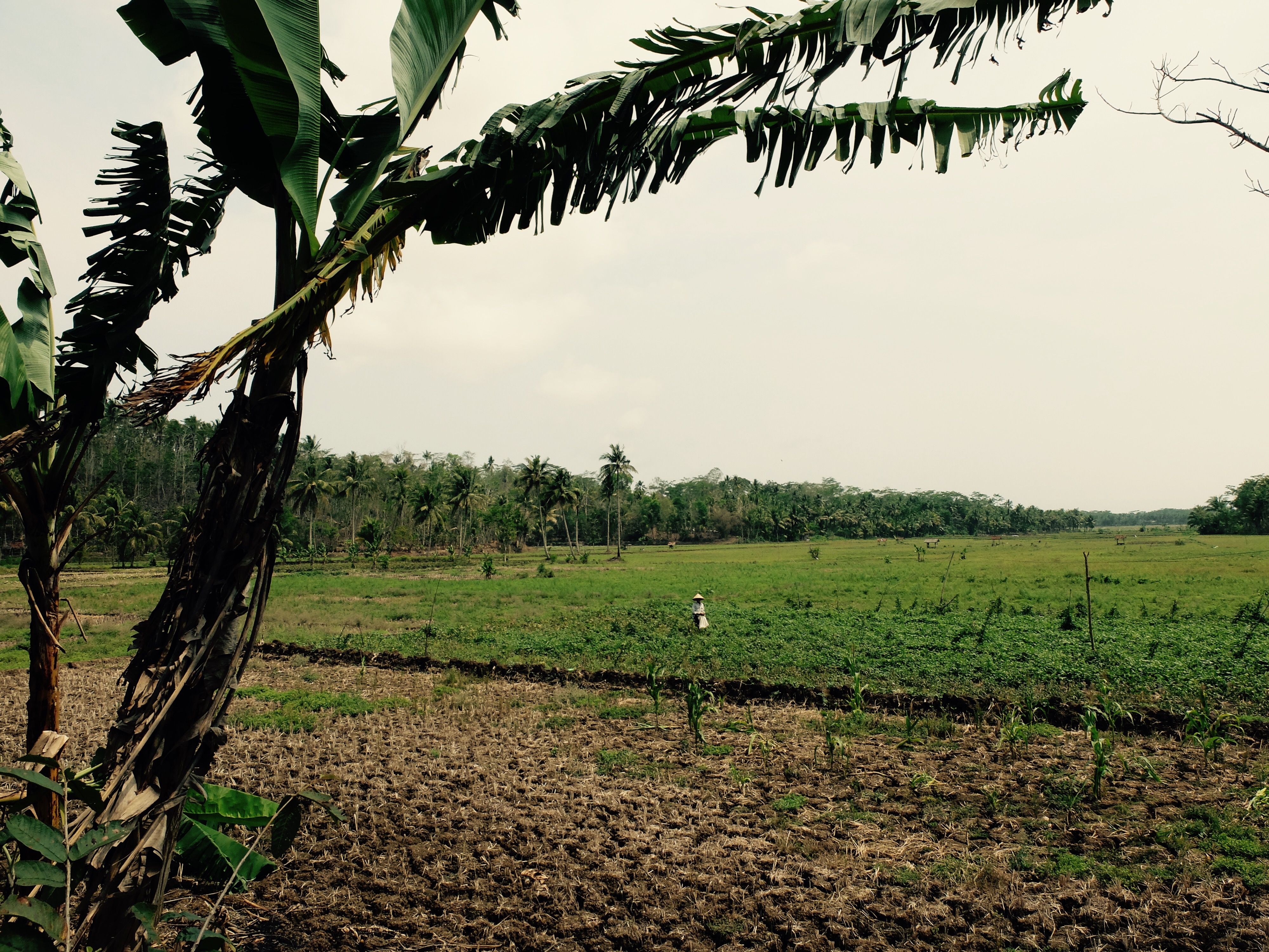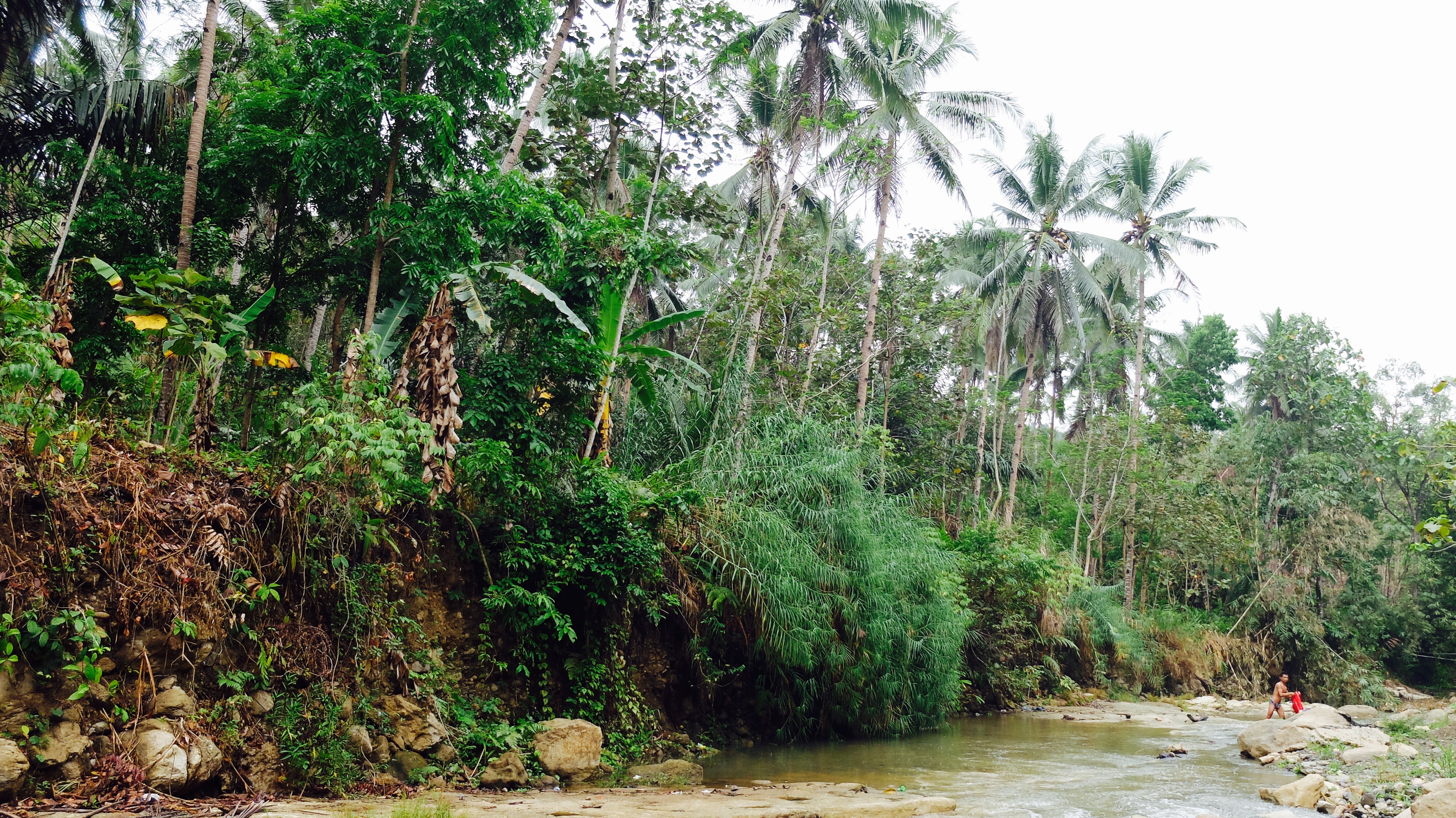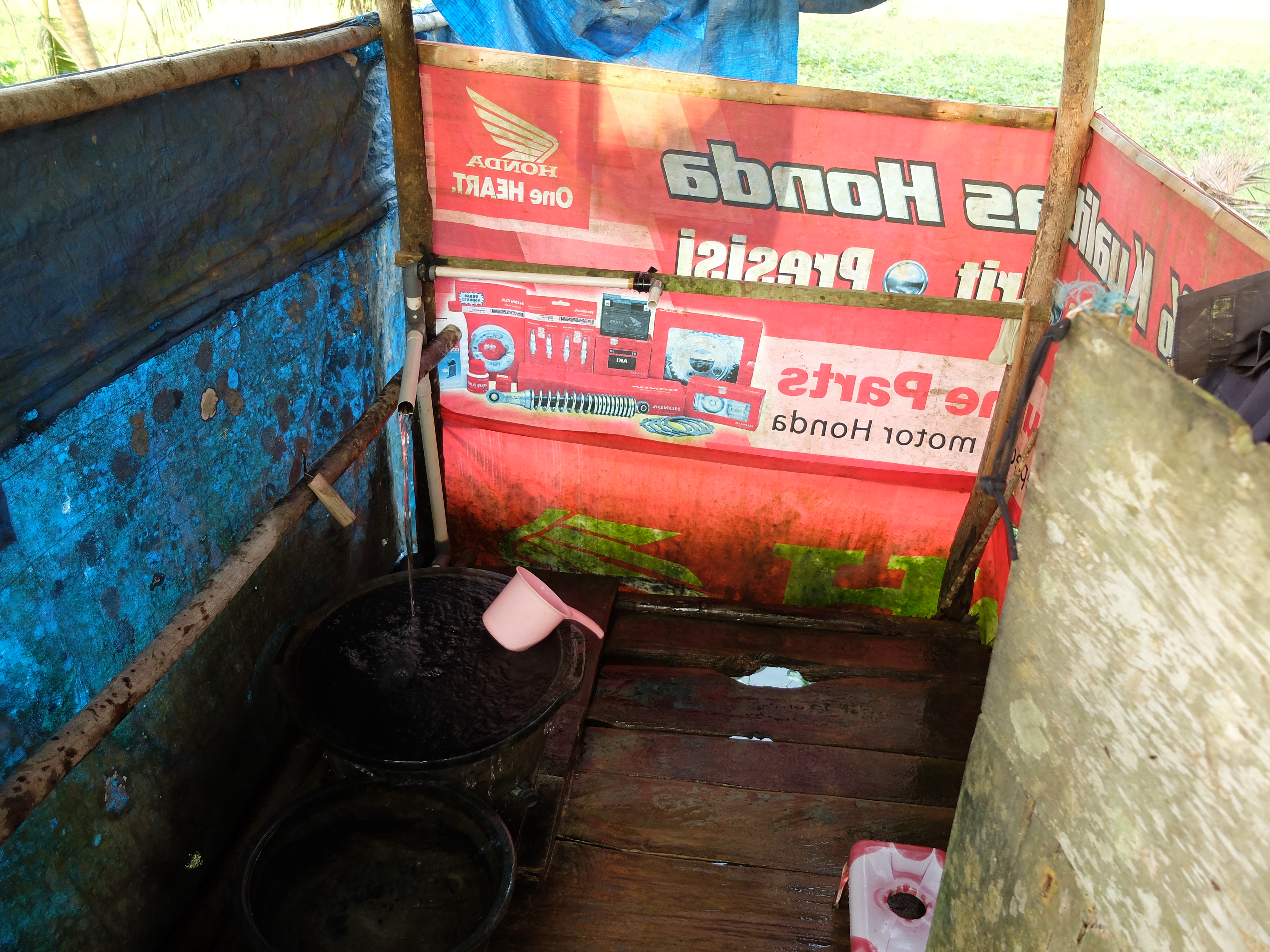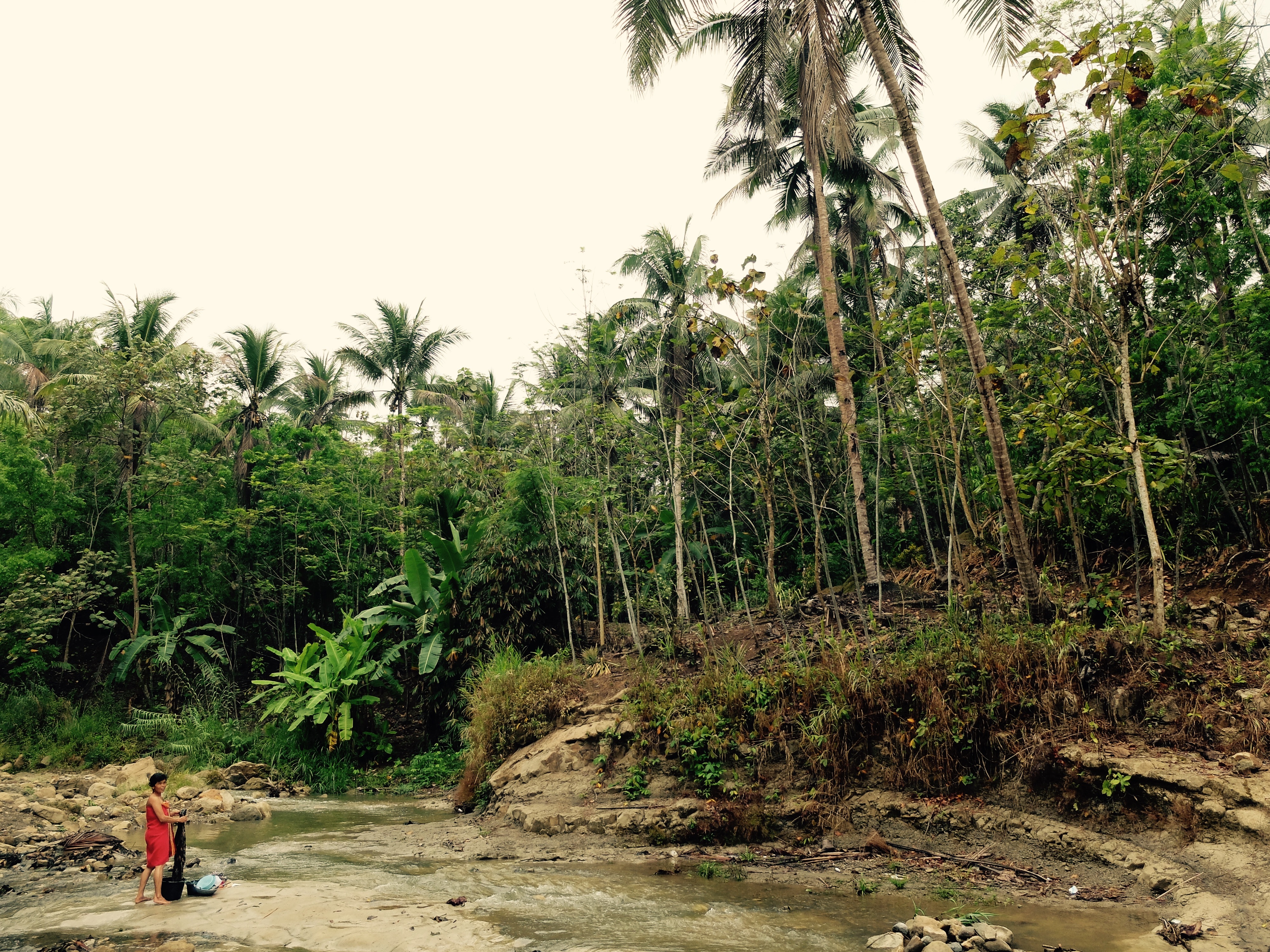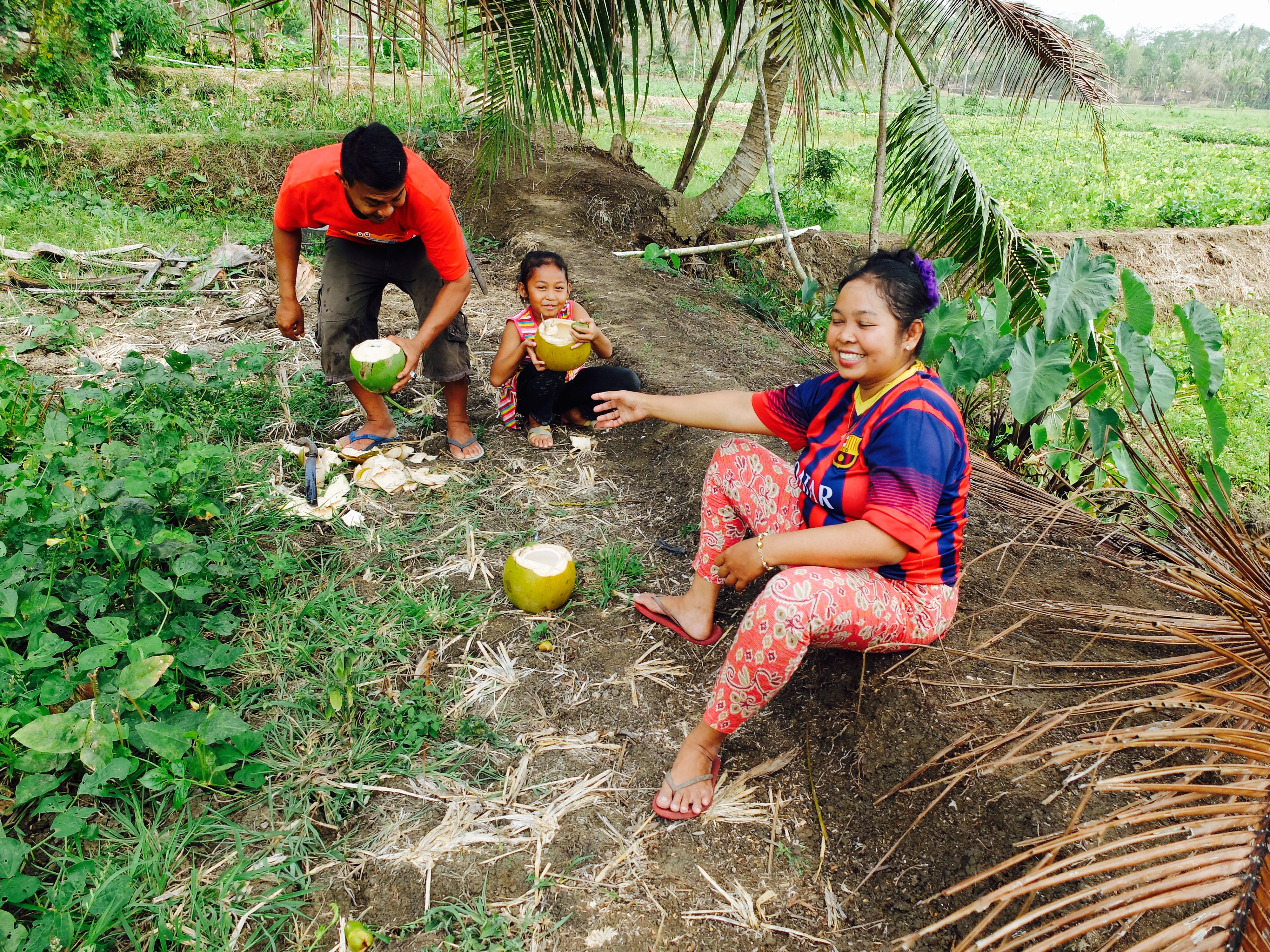 Vader Kosim nam me mee naar de rivier vroeg in de morgen, waar iedereen aan het wassen was. Hij reed zonder fear. Ik voelde me best veilig op zo een grote motor op een veel te gevaarlijke weg. Mensen waren zich aan het wassen in de rivier, we liepen rond om te proberen te spreken met de mensen. Kosim hielp me. Terug in het huis schreef ik een stukje voor op mijn blog en daarna reden we met z'n drieën op de motor rijstveld van de ouders van Kosim. Kosim haalde een kokosnoot uit de boom en hakte hem open zodat ik kon drinken en eten. Hij was zienbaar in zijn element. En dat was toch wel echt een geluksmoment. Daar zitten met een familie op het land van hun familie, aan de andere kant van de wereld, met een kokosnoot in je handen.