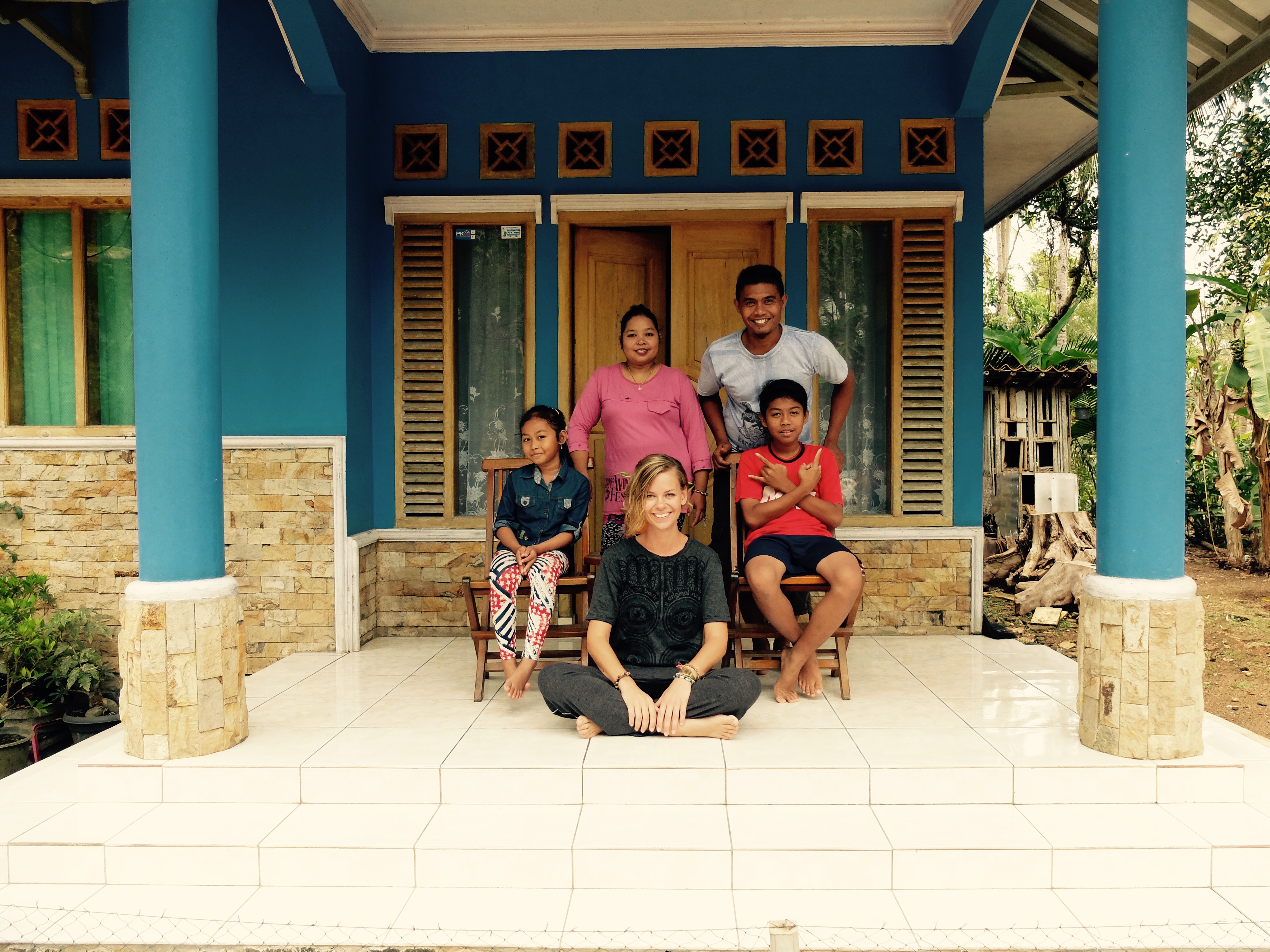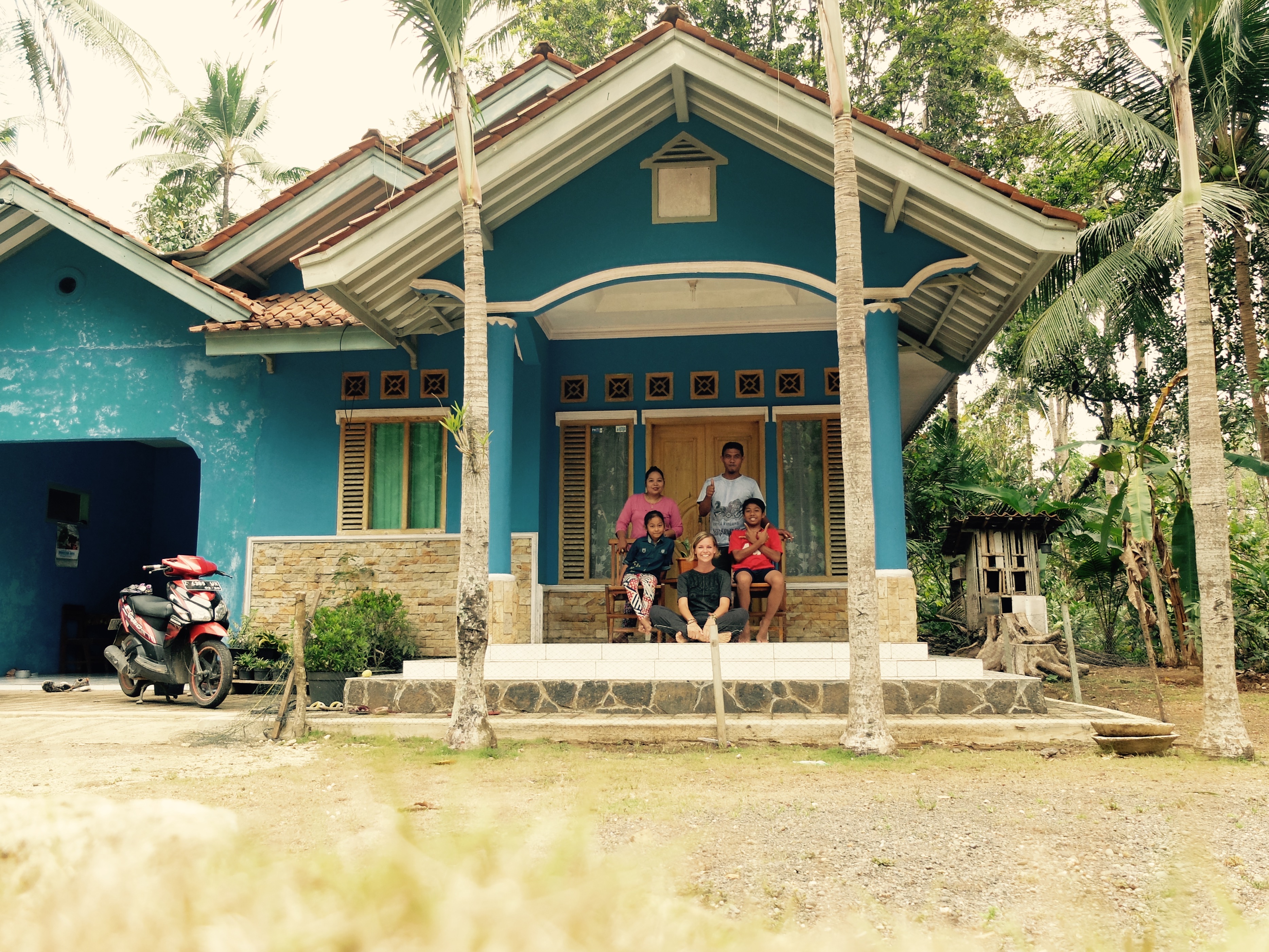 Na mijn eerste echte surfles (jaja ik kan staan) kwam ik Jo tegen op het strand, we raakten aan de praat en het ging over adventures. Over het in contact komen met de bevolking. Dat gaat in dit gedeelte van Java niet zo makkelijk. Je moet namelijk eerst bij het hoofd van het dorp komen en deze moet je goedkeuring geven om binnen te treden. Dat kan alleen als je Bahasa spreekt. Hij bood me aan om daarbij te helpen. En dat wilde ik maar al te graag. Maar eerst een dagje greenvalley met andere backpackers. We reden er heen met de scoot, freedommm! Daar klimmen, bodyraften en in het prachtige turquoise water springen, ook in een grot gezwommen. Die avond vertrok ik met Jo naar het dorp Sidomulyo, om kennis te maken met het gezin maar vooral goedkeuring te krijgen van het dorpshoofd. Ik trok mijn Loa skirt aan en driekwart blouse. De weg ernaartoe was heel heftig, veel rotsen en potholes. Ik bedacht me hoe het zou gaan als de scoot ons een heuvel op zou rijden, met mijn backpack van 16 kilo erbij gerekend.