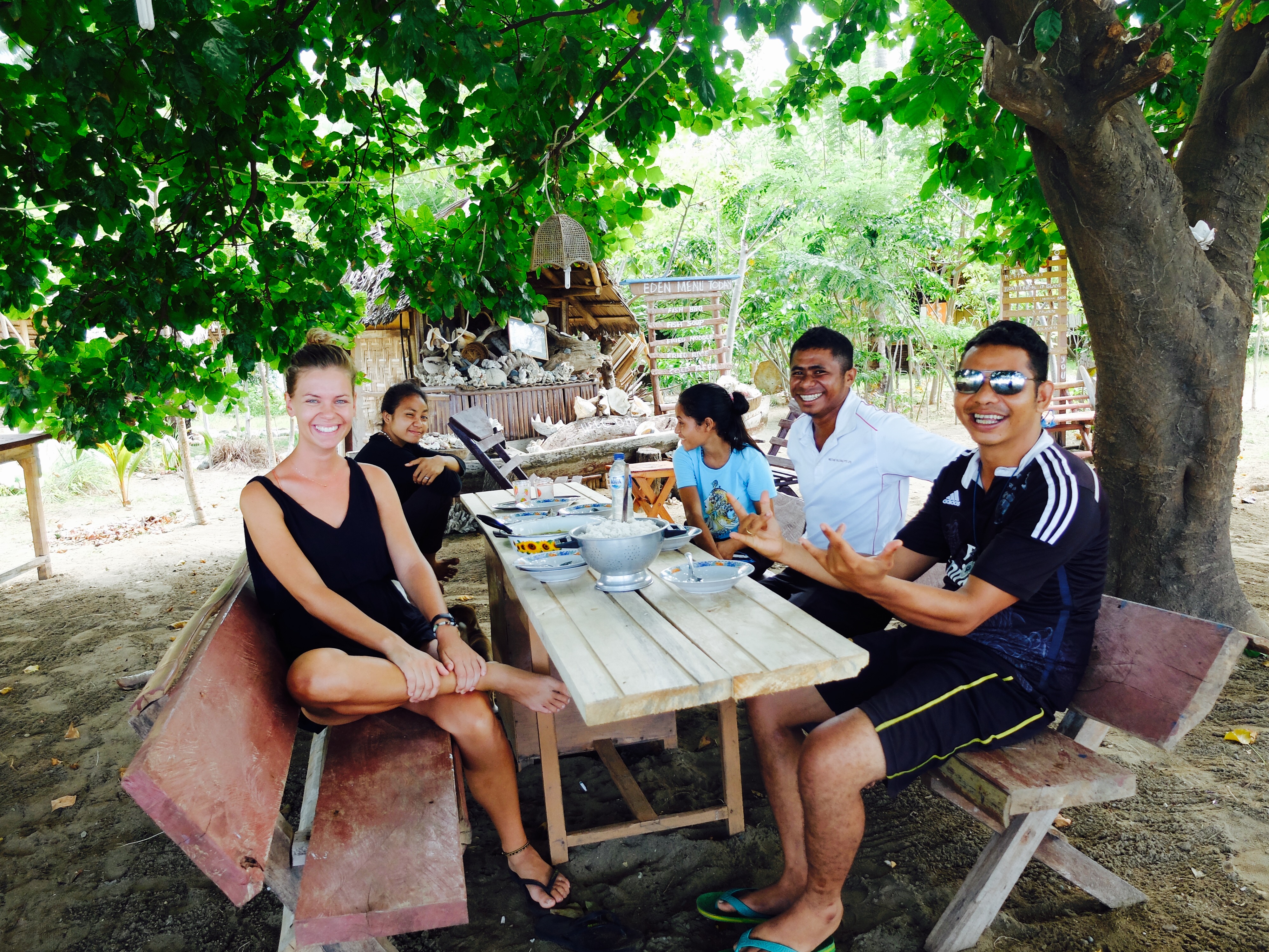 De dag erna deed ik ff rustig aan want mijn hoofd deed nog steeds zeer. Ik las veel in the lonely en maakte een plan voor de rest van mn trip. Schreef een plan voor mijn volunteerjob hier. Ik ging opzoek naar signaal voor mijn telefoon om even mensen te contacten en moest daarvoor naar een basisschooltje waar een klein beetje te vinden is. Ik werd achtervolgd door locals, wat eigenlijk ronduit vervelend was. Omdat de eerste keer niet goed lukte, ging ik nog eens maar met de staff. Minder vervelend en ik nam een Bintang voor op de terugweg. Aangekomen in Eco Eden was het heel gezellig. Een voor mij onbekende local vierde zijn verjaardag en ik mocht daar deel van uitmaken. We dansten traditional en aten vis (wat een verrassing) bij het kampvuur en zij zongen Indonesische liedjes met begeleiding van een gitaar. Natuurlijk vloeide de arrack rijkelijk en voelde ik hem zitten, toen het om half negen opeens klaar was. Ik was nog een beetje aan het nahangen met de staff en toen ook de puppy van de baas dronken was, was het mooi geweest!
