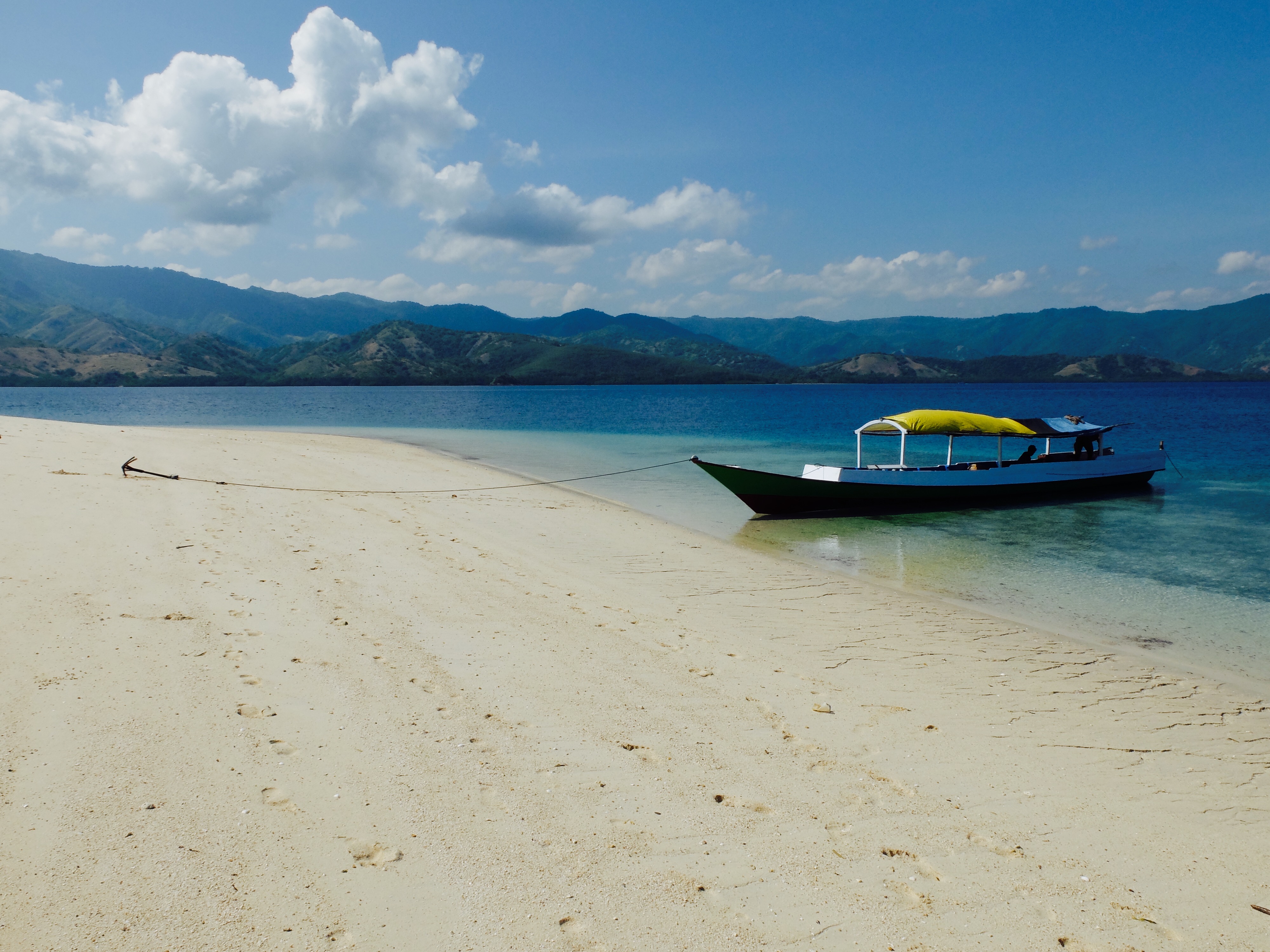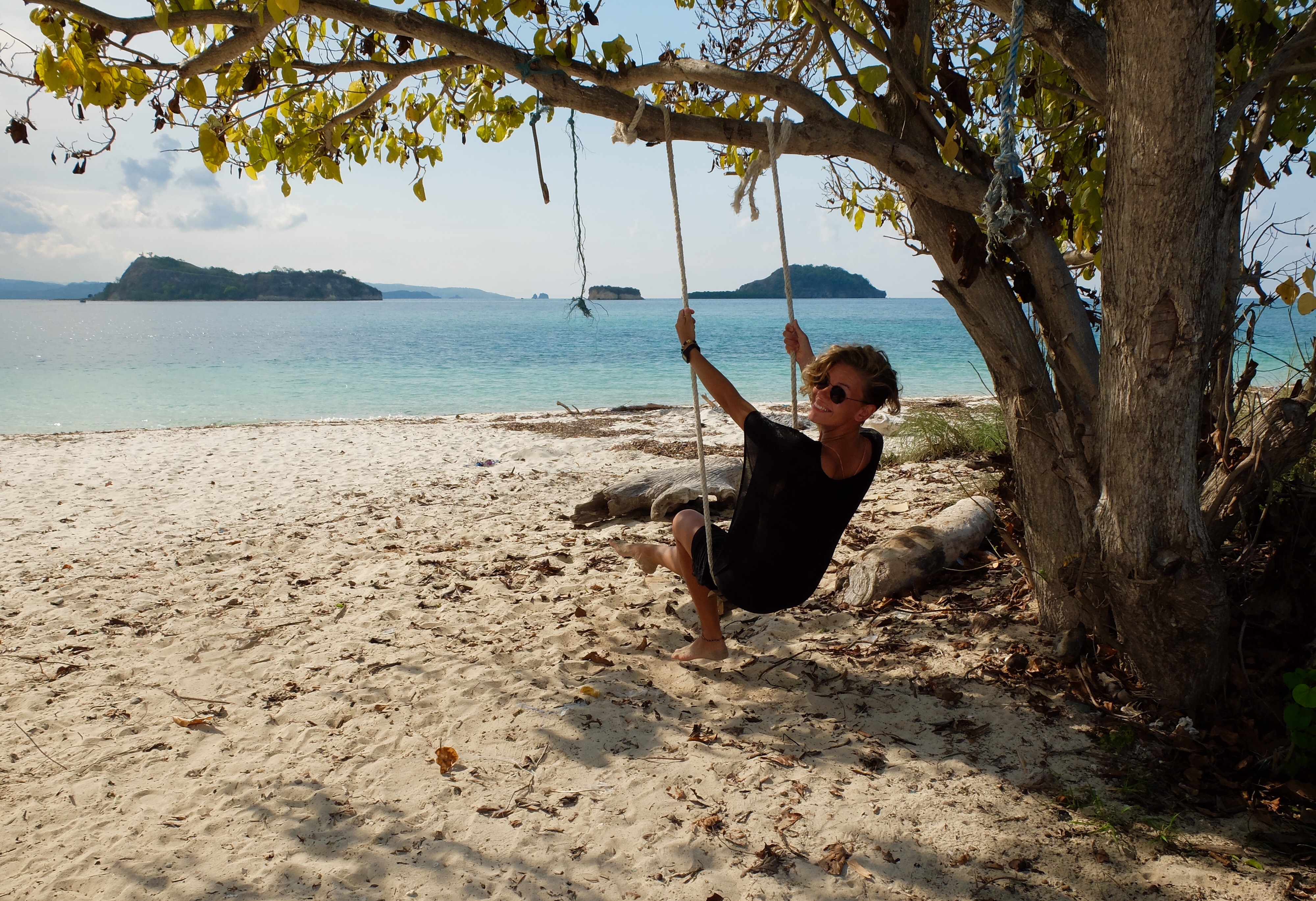 We deden eerst een snorkelspot, welke mooi was; nieuw soort vissen gezien en van heel dichtbij. Op het eilandje met wit strand waar we vervolgens aanmeerden, waren we alleen. Ik was verbaasd over de schoonheid! Het water is zo helder, het zand wit en de palmbomen bijna nep groen. Ik liep helemaal alleen over het strand. Maakte veel fotos. Mathilda lag onder een boom te slapen en de mannen gingen vissen voor onze visbbq van later. Ze gooiden een net uit in de zee en met een duikbril joegen ze de vissen in het net. De vissen stopten ze in een blauw plastic zakje wat wilde bewoog. Het eiland was zo sereen en ik vroeg me af hoe druk het zou zijn in hoogseizoen en besefte me hoe uniek deze situatie was. In de Filipijnen kreeg je een priveboot voor een vermogen en op de gilis duwen ze een boot helemaal vol.