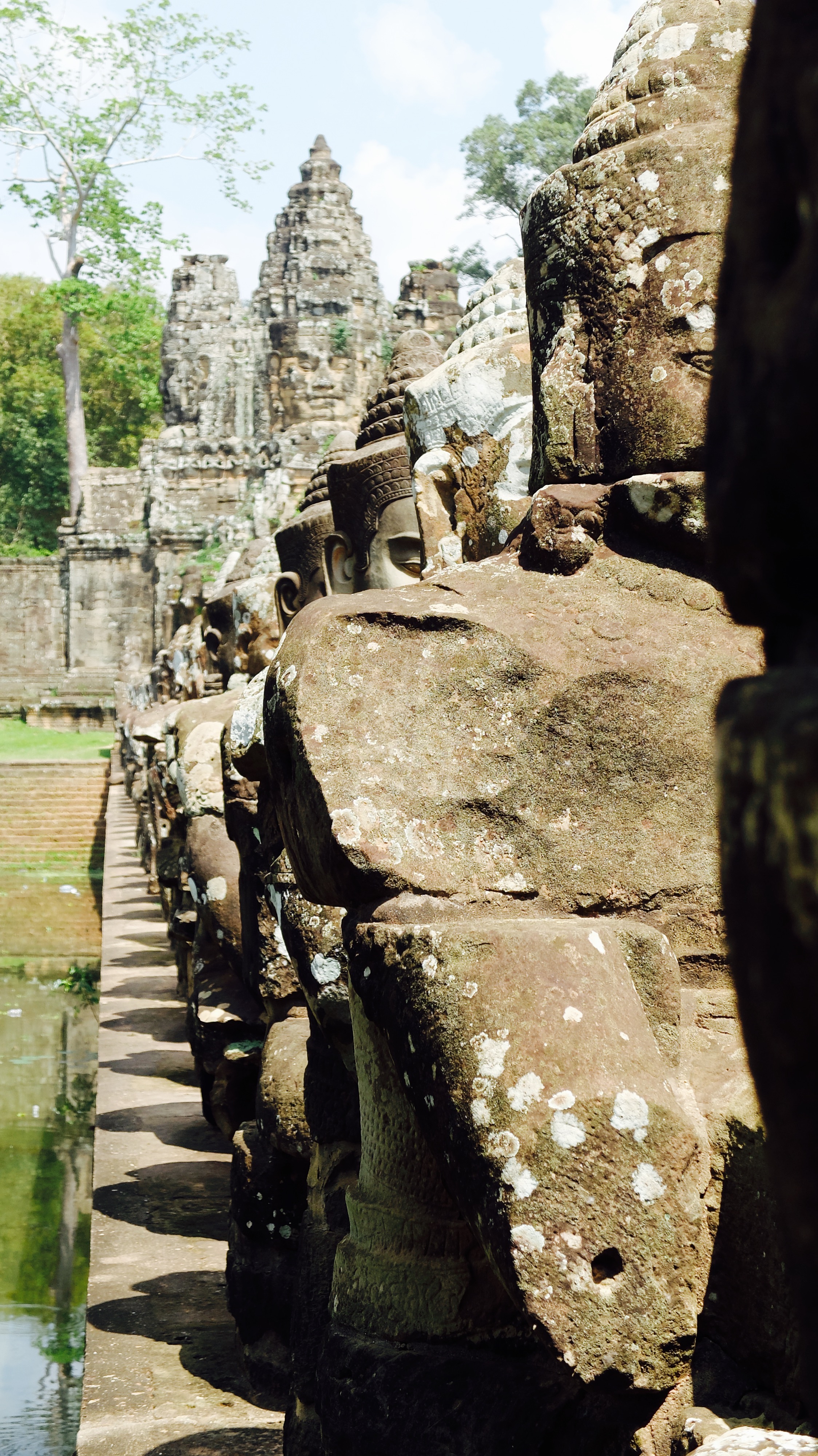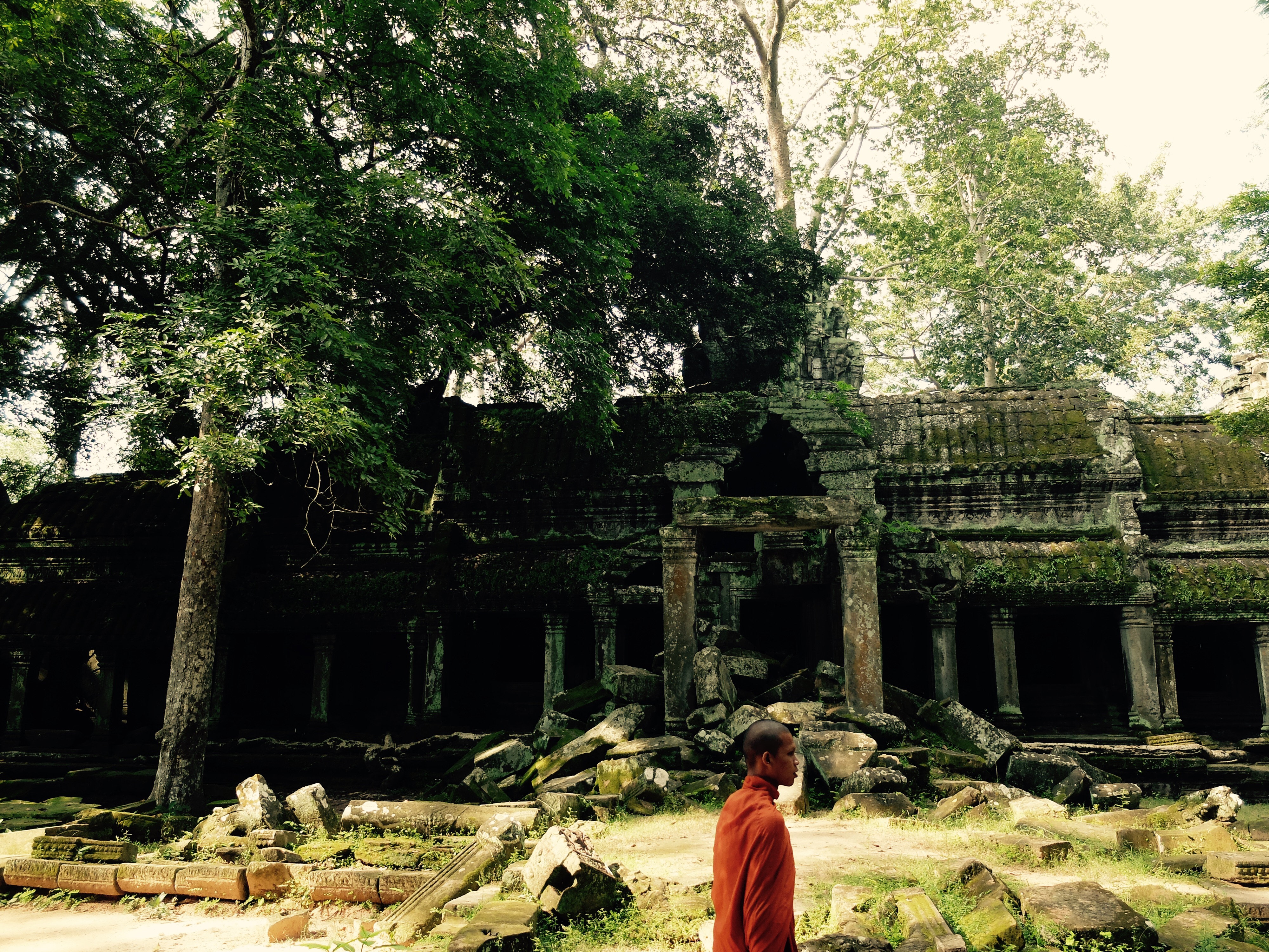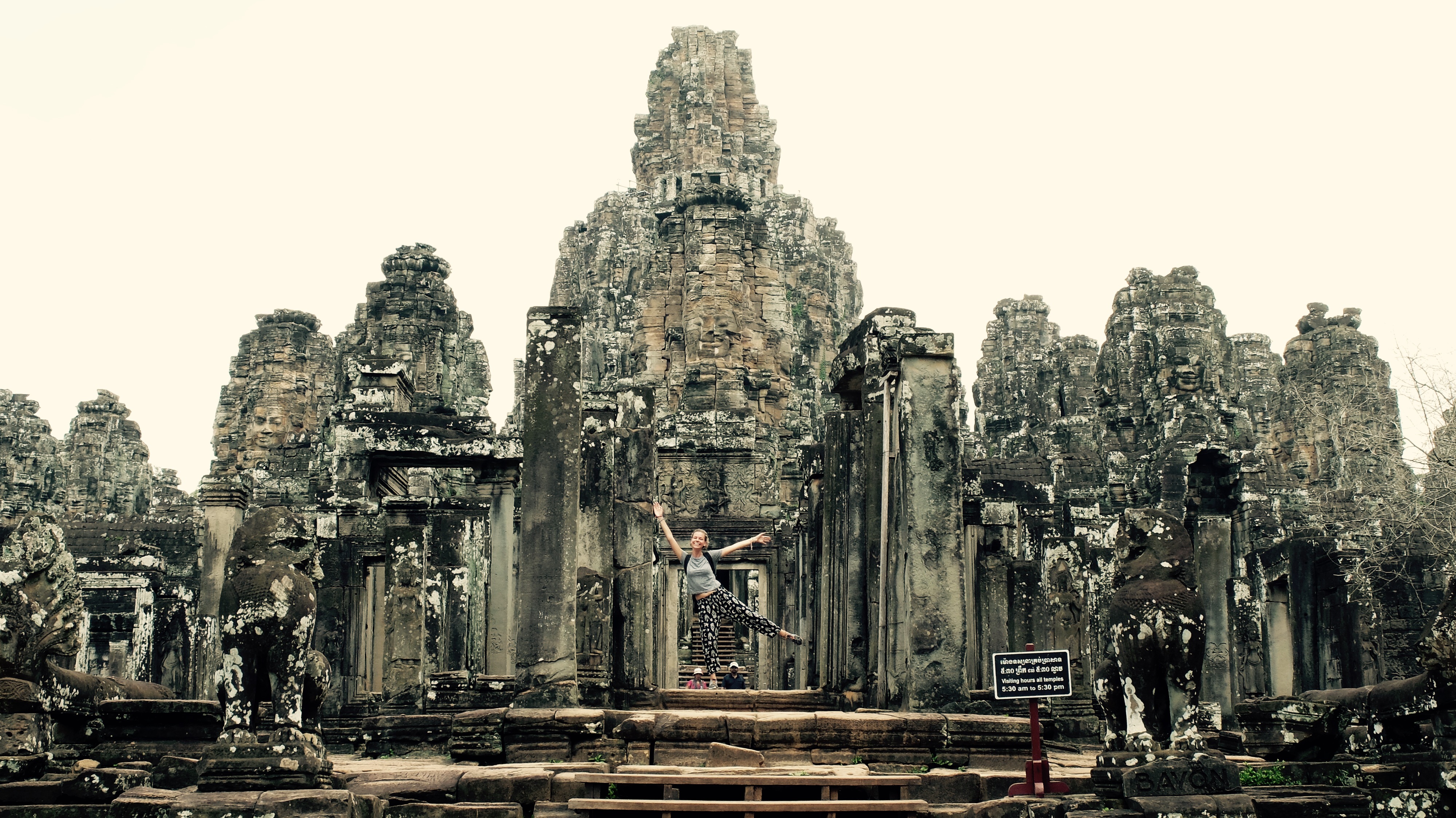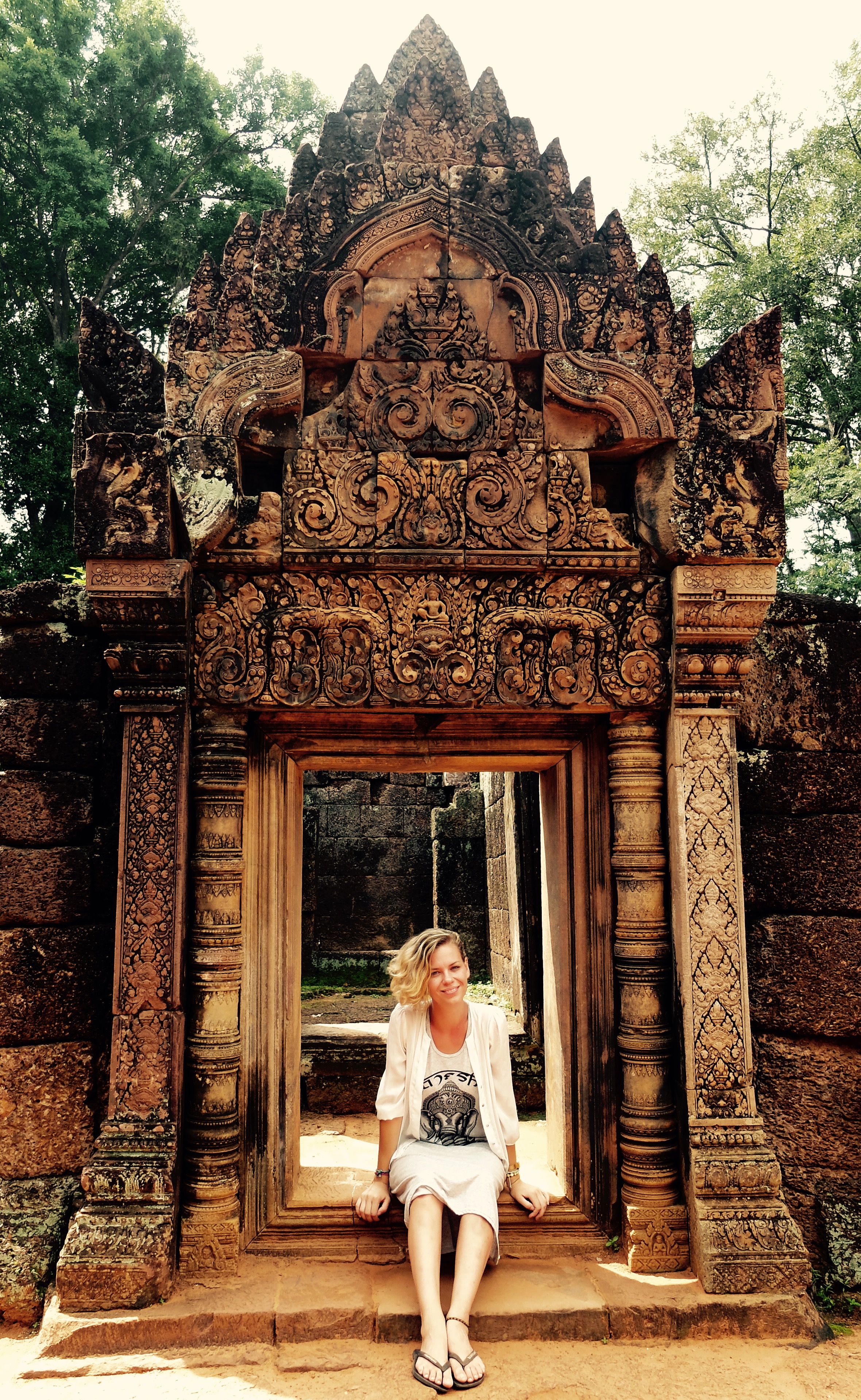Cambodja, ik heb nog niet heel veel van je gezien. Maar wat ik heb gezien was werkelijk ongelofelijk. De Angkor tempel, het grootste religieuze (hindoeistische) gebouw van de wereld (en grootste etagepiramide) met een gigantische hoeveelheid hectare eromheen, vol met tempels. Tempels gebouwd rond 1100, in de tijd van het Khemer-rijk en Khemet is tevens de taal die de Cambodi's vandaag de dag spreken. Vanuit hier is de aziatsiche kunst onstaan en uitgewaaid naar de omliggende landen. Ik ben zo blij dat ik er twee dagen voor uitgetrokken heb. De eerste dag erheen met een tuktuk, de zon zien opkomen bij Angkor Wat en de binnenkant bewonderd. Daarna de tempels verder weg bezichtigd. Een daarvan was de ladytemple, gewijd aan Shiva en gemaakt van ontzettend mooi oranje zandsteen, waarin zoveel detail in de uitgewerkte afbeeldingen te vinden is. Ongelofelijk hoe oud het is en nog steeds intact. Bij de andere templs was het heel mooi om te zien wat de uitwerking van de natuur is. Mos, bomen die dwars door de tempels heengegroeid zijn, jungle, alles. Dag twee de rest bezocht op de fiets en het verveelde me nog steeds niet. De gezichten van buddha. De jungletempel die voor film gebruikt is… Ontzettend. I love Angkor!
