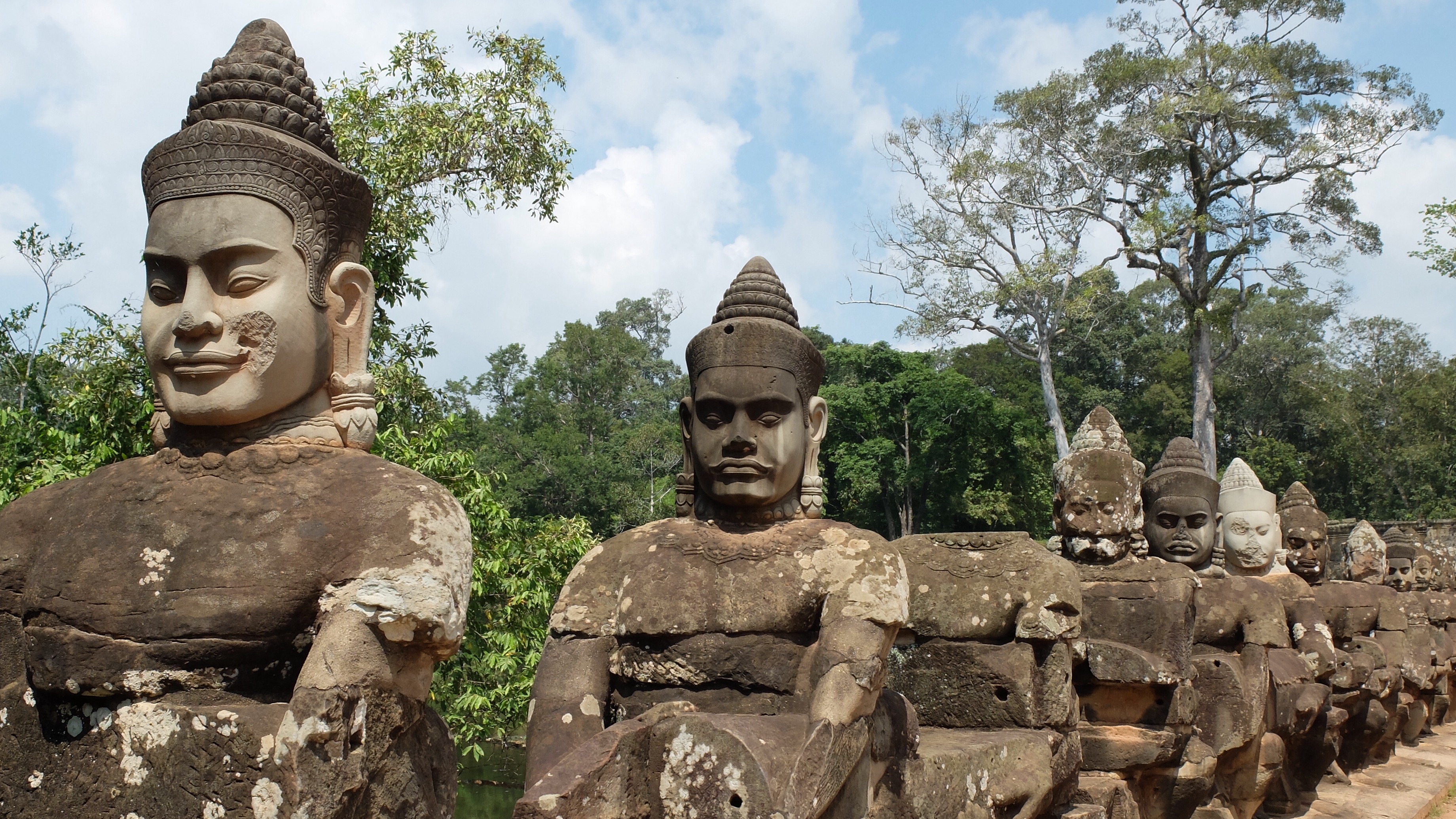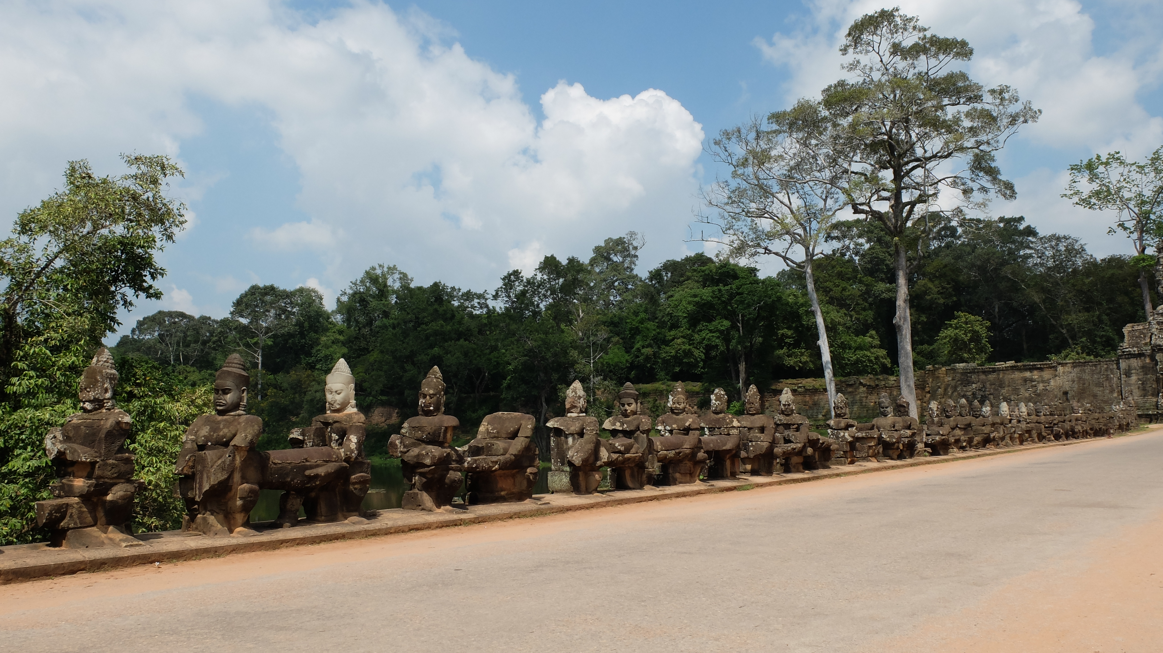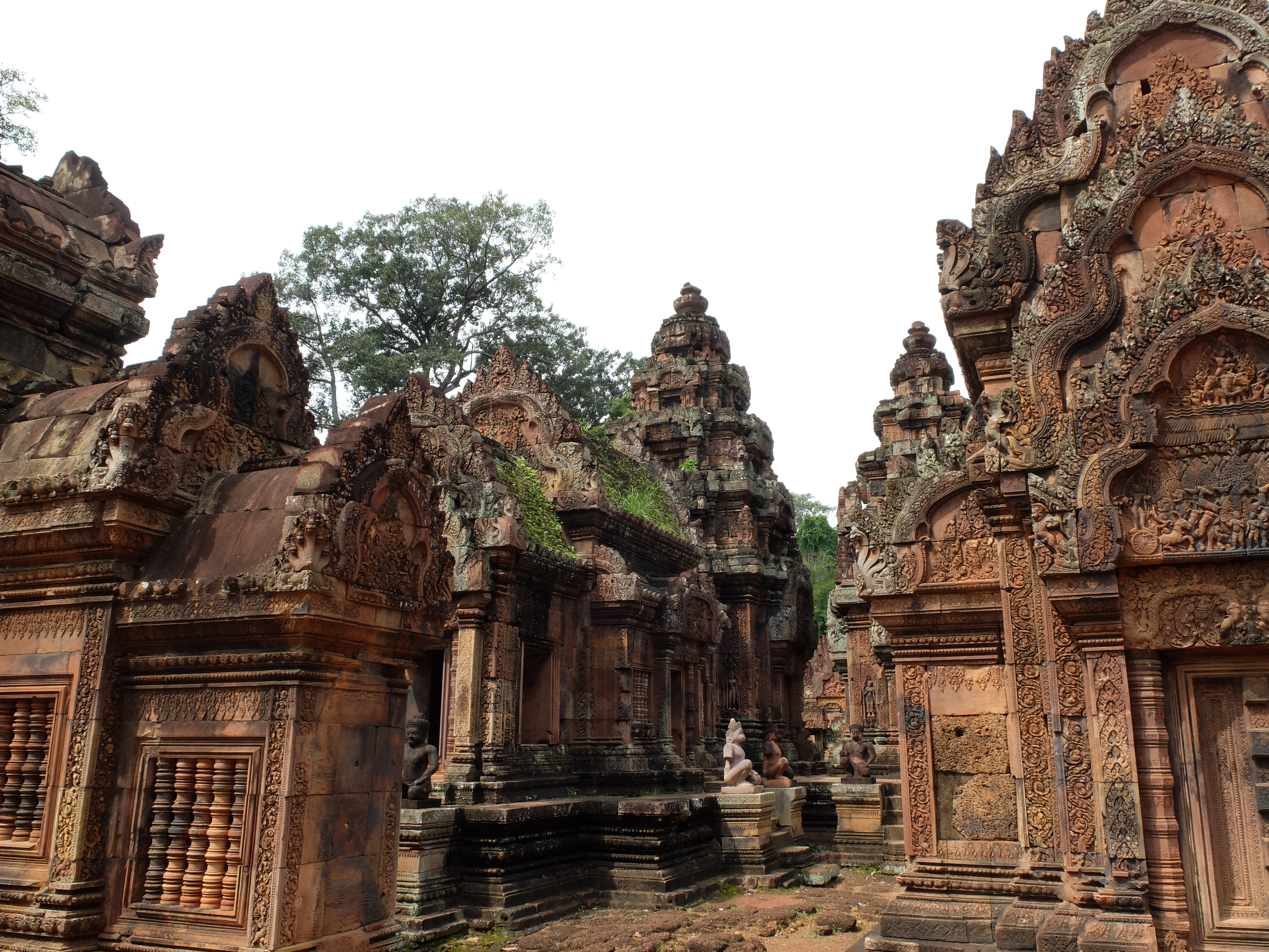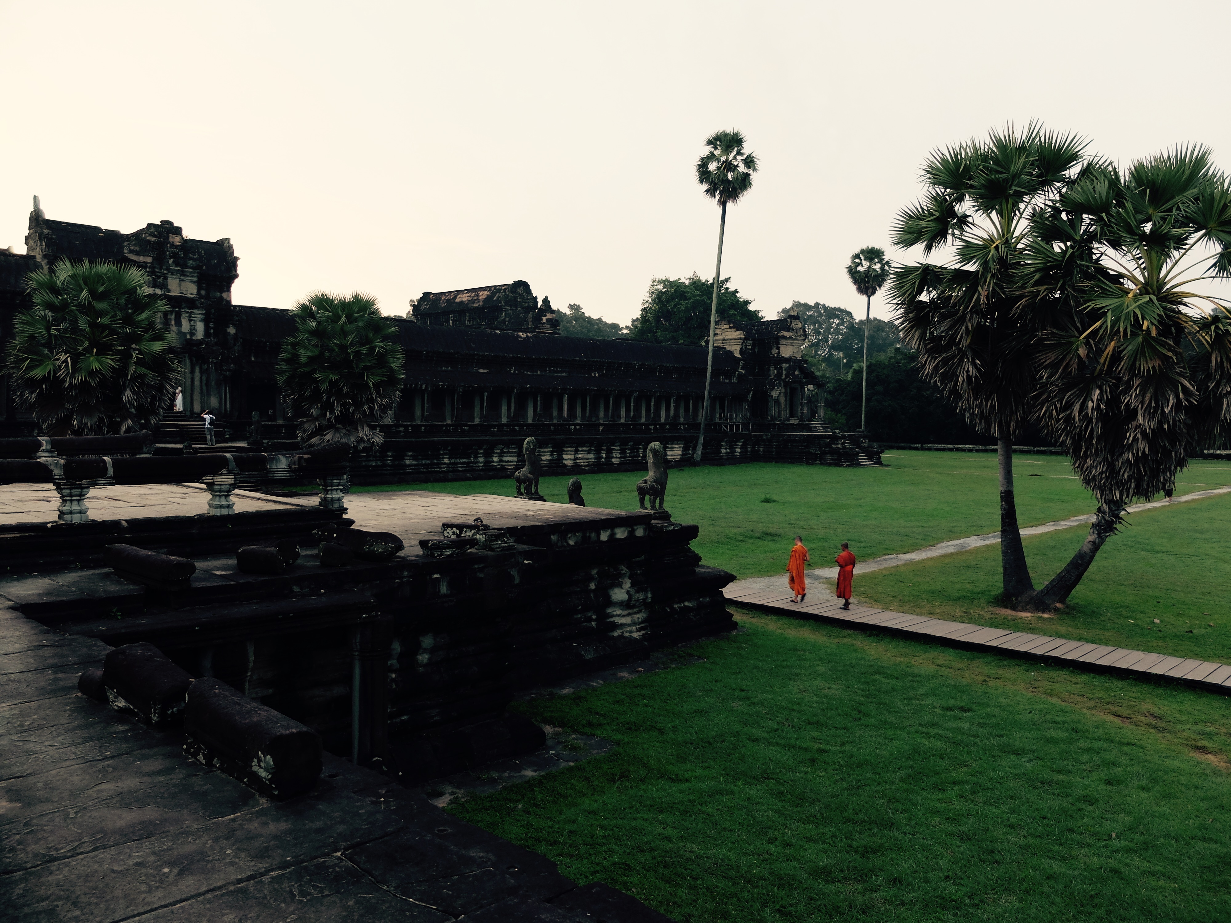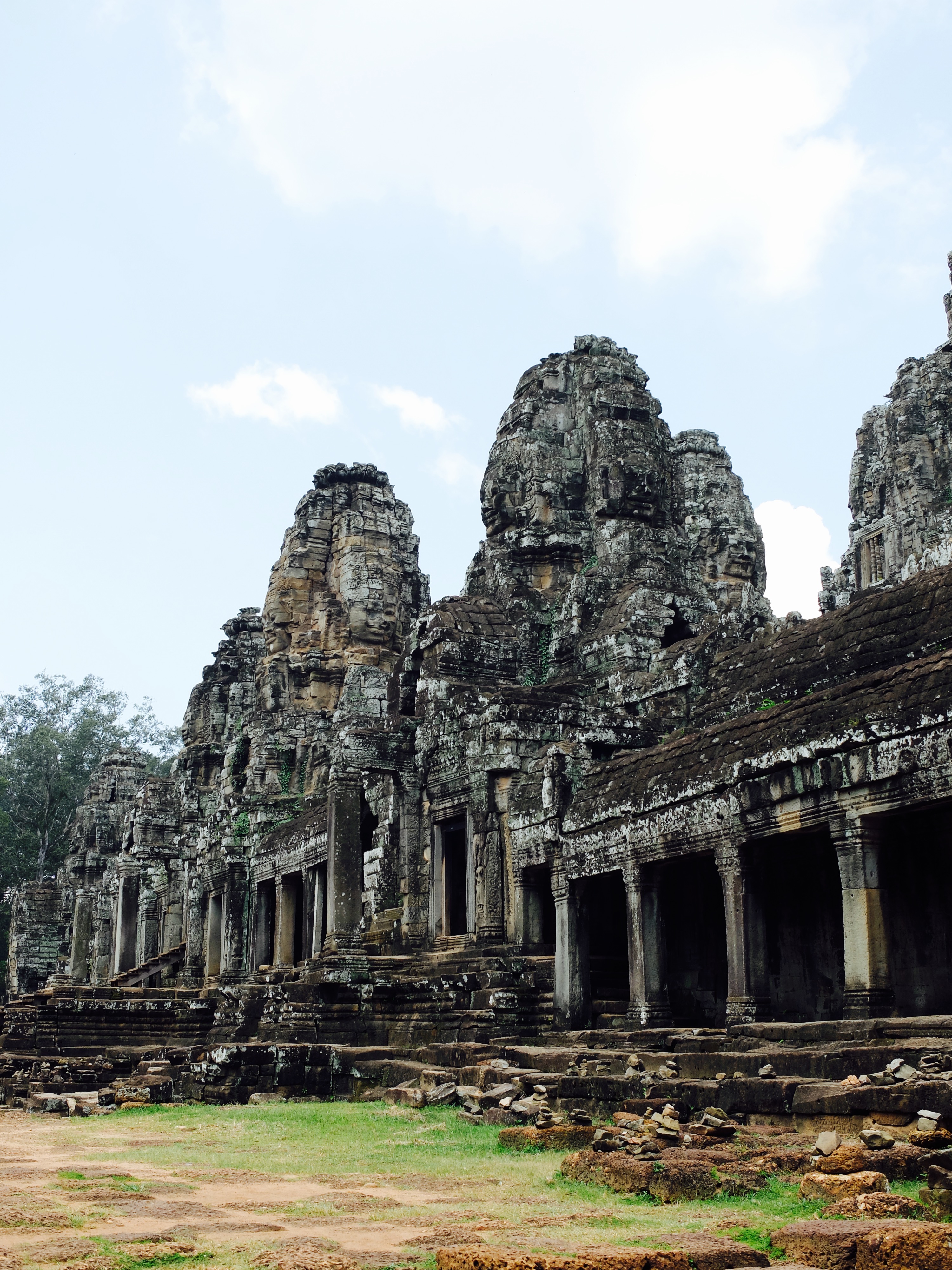Cambodja, ik heb nog niet heel veel van je gezien. Maar wat ik heb gezien was werkelijk ongelofelijk. De Angkor tempel, het grootste religieuze (hindoeistische) gebouw van de wereld (en grootste etagepiramide) met een gigantische hoeveelheid hectare eromheen, vol met tempels. Tempels gebouwd rond 1100, in de tijd van het Khemer-rijk en Khemet is tevens de taal die de Cambodi's vandaag de dag spreken. Vanuit hier is de aziatsiche kunst onstaan en uitgewaaid naar de omliggende landen. Ik ben zo blij dat ik er twee dagen voor uitgetrokken heb. De eerste dag erheen met een tuktuk, de zon zien opkomen bij Angkor Wat en de binnenkant bewonderd. Daarna de tempels verder weg bezichtigd. Een daarvan was de ladytemple, gewijd aan Shiva en gemaakt van ontzettend mooi oranje zandsteen, waarin zoveel detail in de uitgewerkte afbeeldingen te vinden is. Ongelofelijk hoe oud het is en nog steeds intact. Bij de andere templs was het heel mooi om te zien wat de uitwerking van de natuur is. Mos, bomen die dwars door de tempels heengegroeid zijn, jungle, alles. Dag twee de rest bezocht op de fiets en het verveelde me nog steeds niet. De gezichten van buddha. De jungletempel die voor film gebruikt is… Ontzettend. I love Angkor!