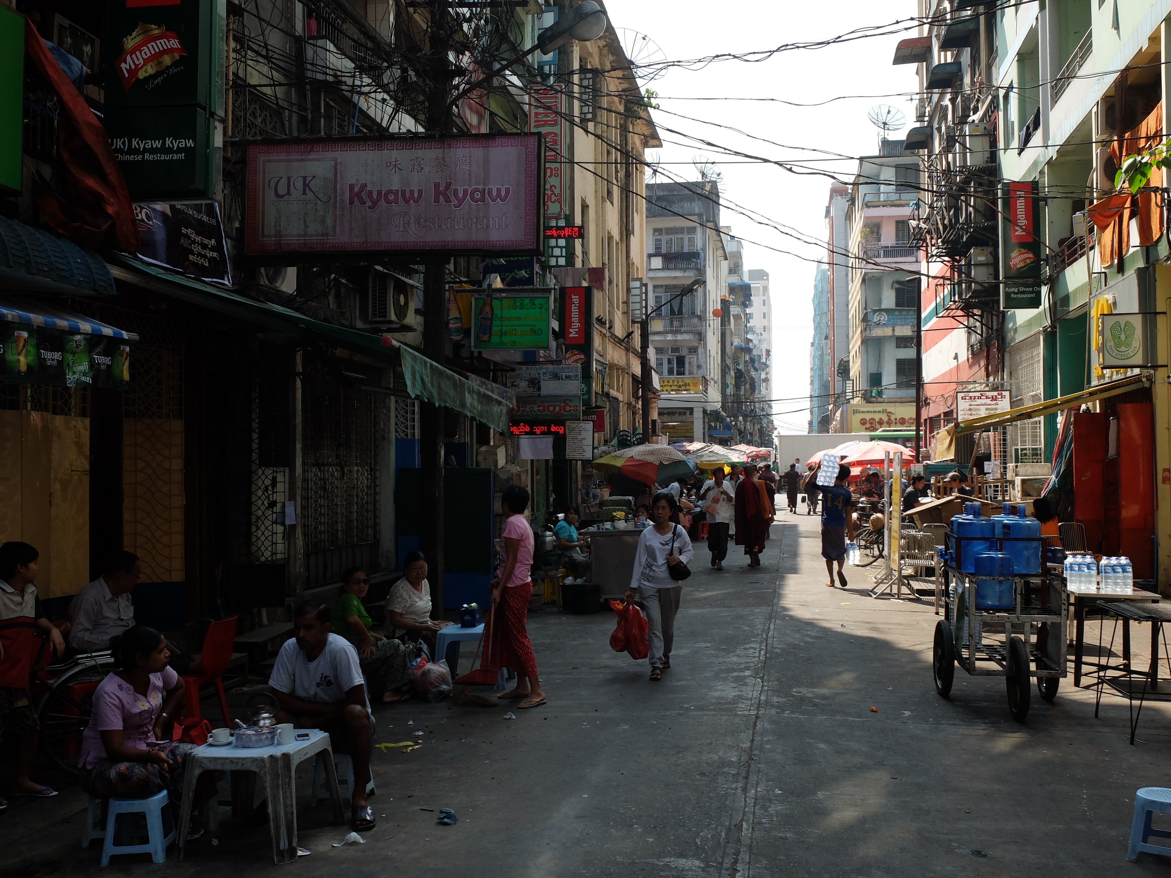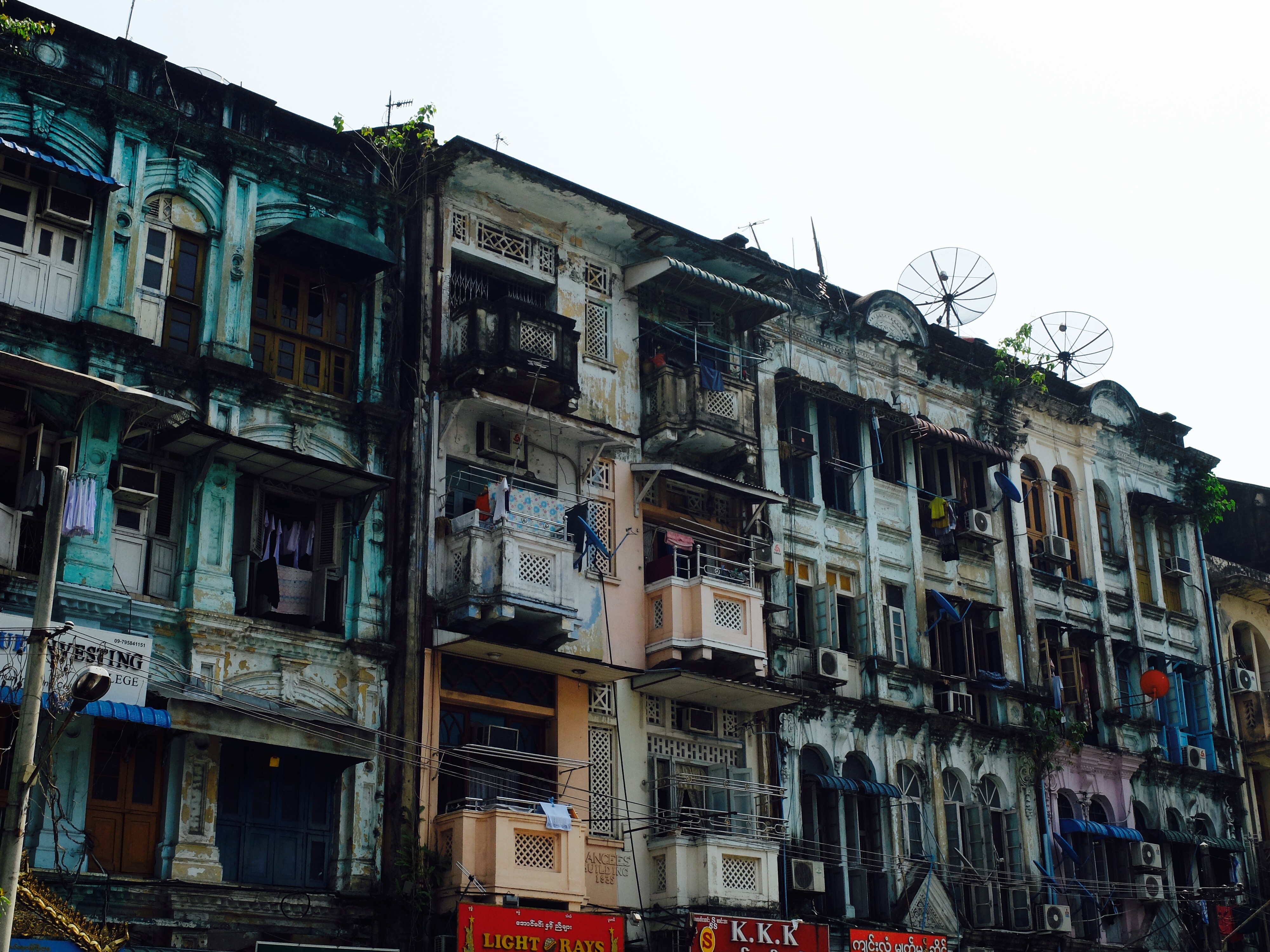 Elk straatje in Yangon is interessant, fotogeniek en overal is wat te zien en te doen. En dan de turquoise oude koloniale gebouwen. En niet te vergeten de mensen die je met rust laten en niet al hun spullen willen verkopen.
